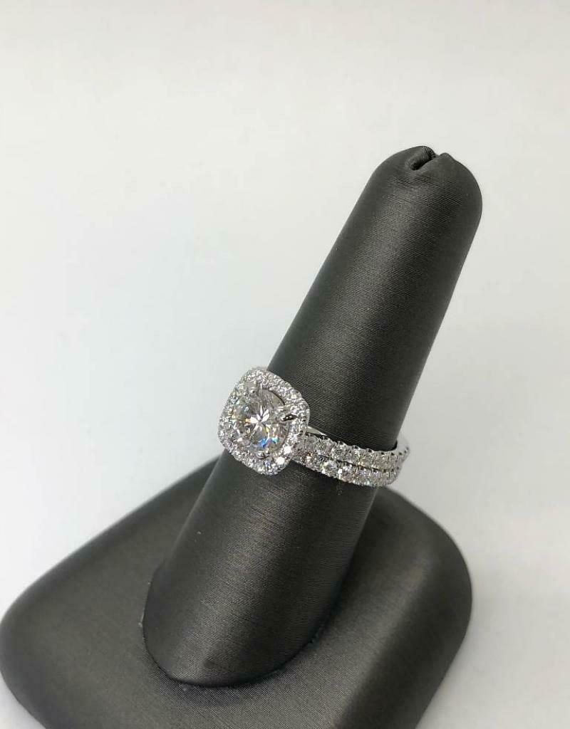 5Ct Round Cut Diamond Bridal Set Accent Halo Ring Band 14K White Gold Finish