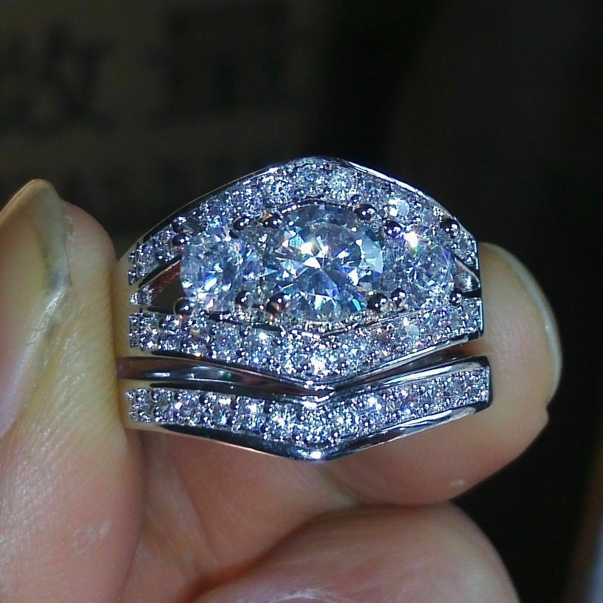 5Ct Round Cut Diamond Bridal Set Art Deco Engagement Ring 14K White Gold Finish