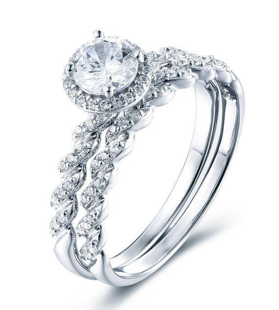 5Ct Round Cut Diamond Bridal Set Braided Shank Ring Band 14K White Gold Finish