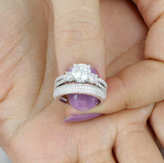 5Ct Round Cut Diamond Bridal Set Cluster Band Solitaire Ring 14K White Gold Over