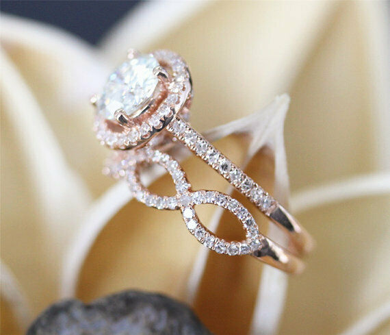 5Ct Round Cut Diamond Bridal Set Halo Ring Infinity Band 14K Rose Gold Finish