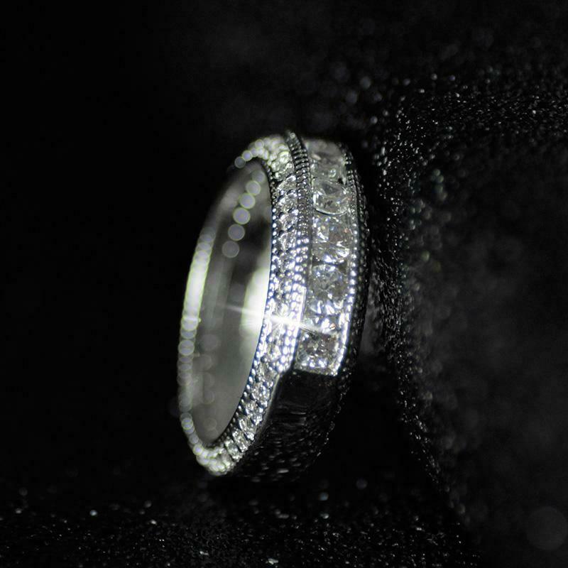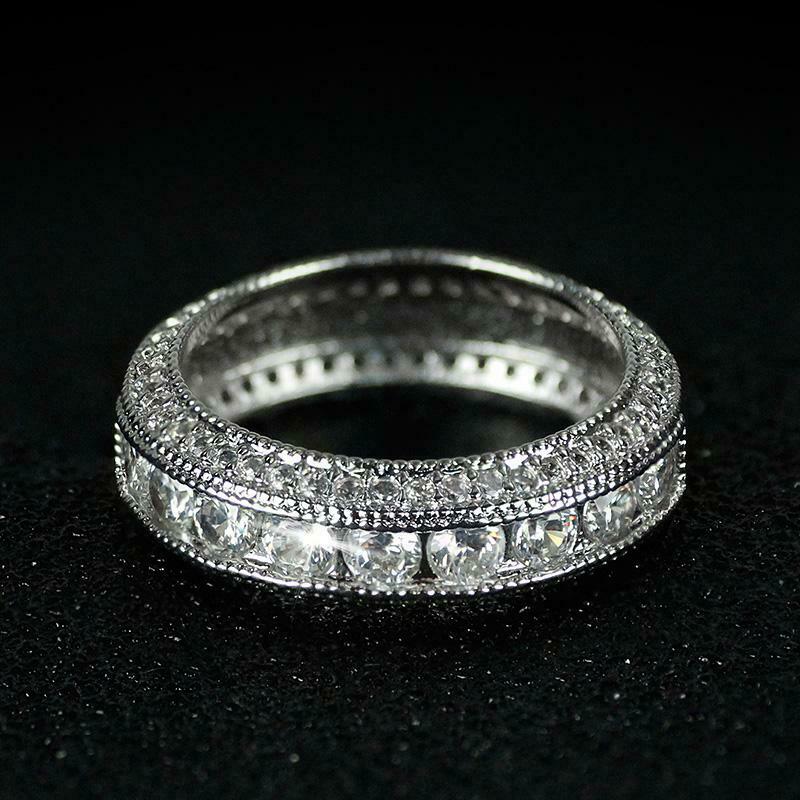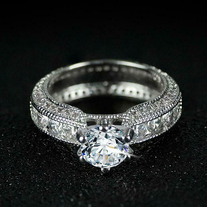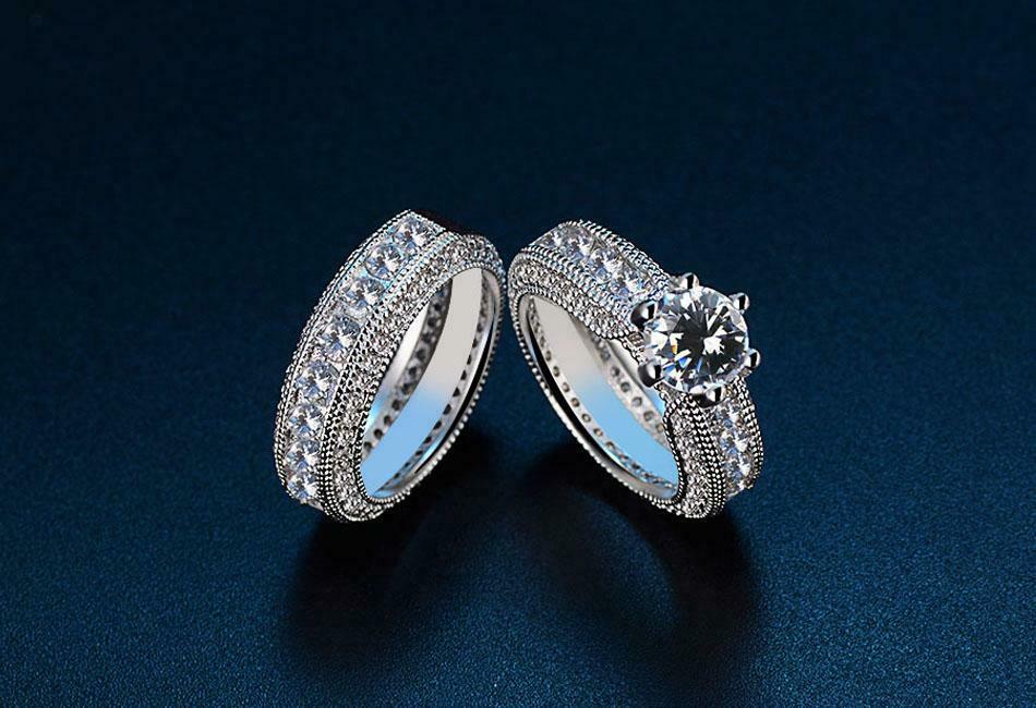 5Ct Round Cut Diamond Bridal Set Wide Vintage Ring Band 14K White Gold Finish