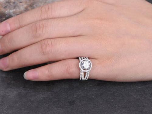 5Ct Round Cut Diamond Bridal Trio Set Split Band Halo Ring 14K White Gold Finish
