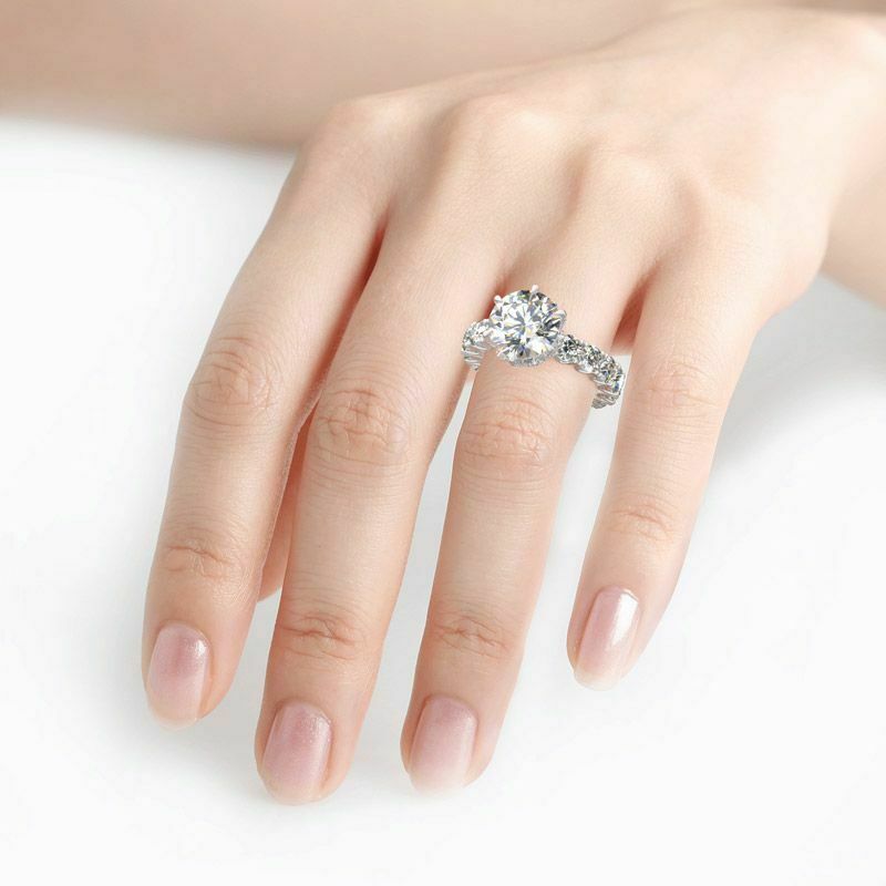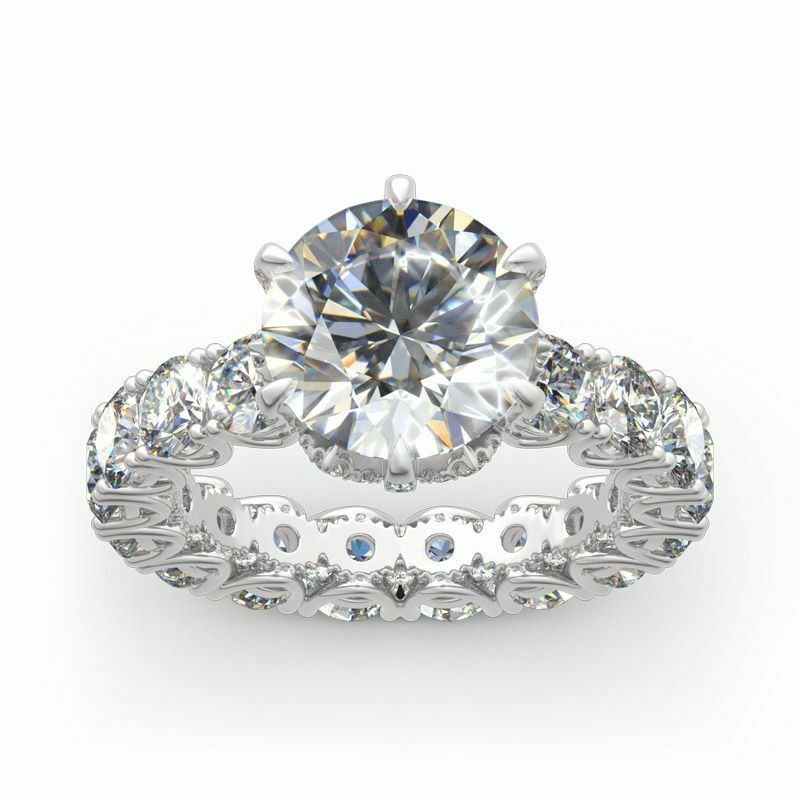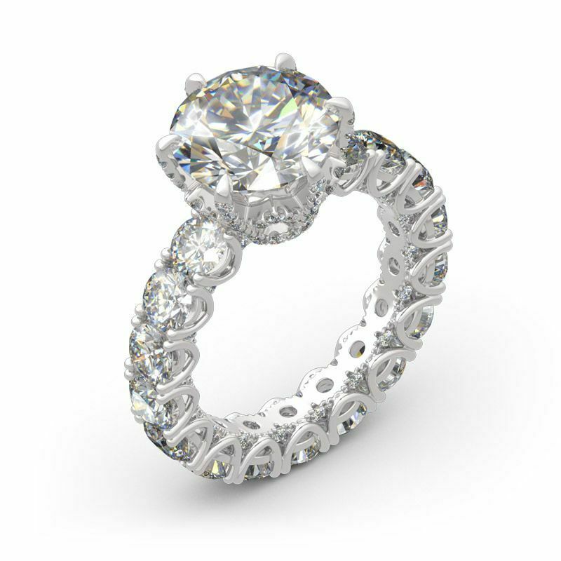 5Ct Round Cut Diamond Cocktail Iced Eternity Engagement Ring 14K White Gold Over