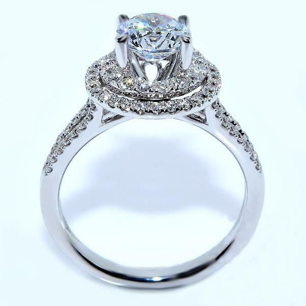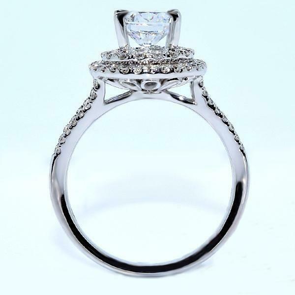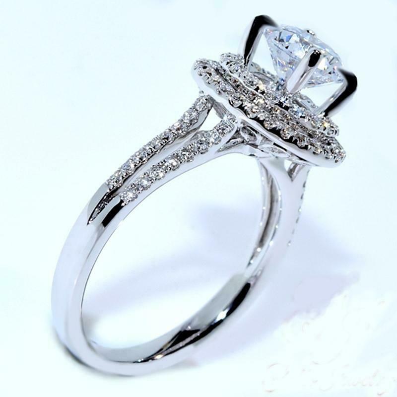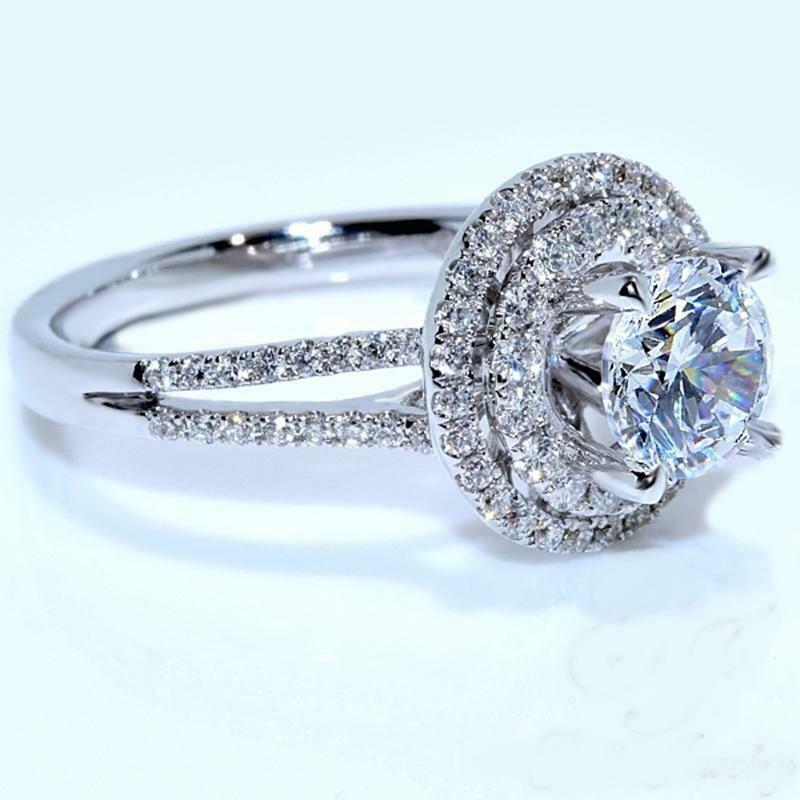 5Ct Round Cut Diamond Dual Halo Split Shank Solitaire Ring 14K White Gold Finish