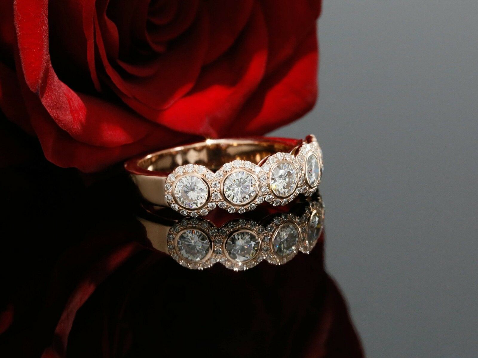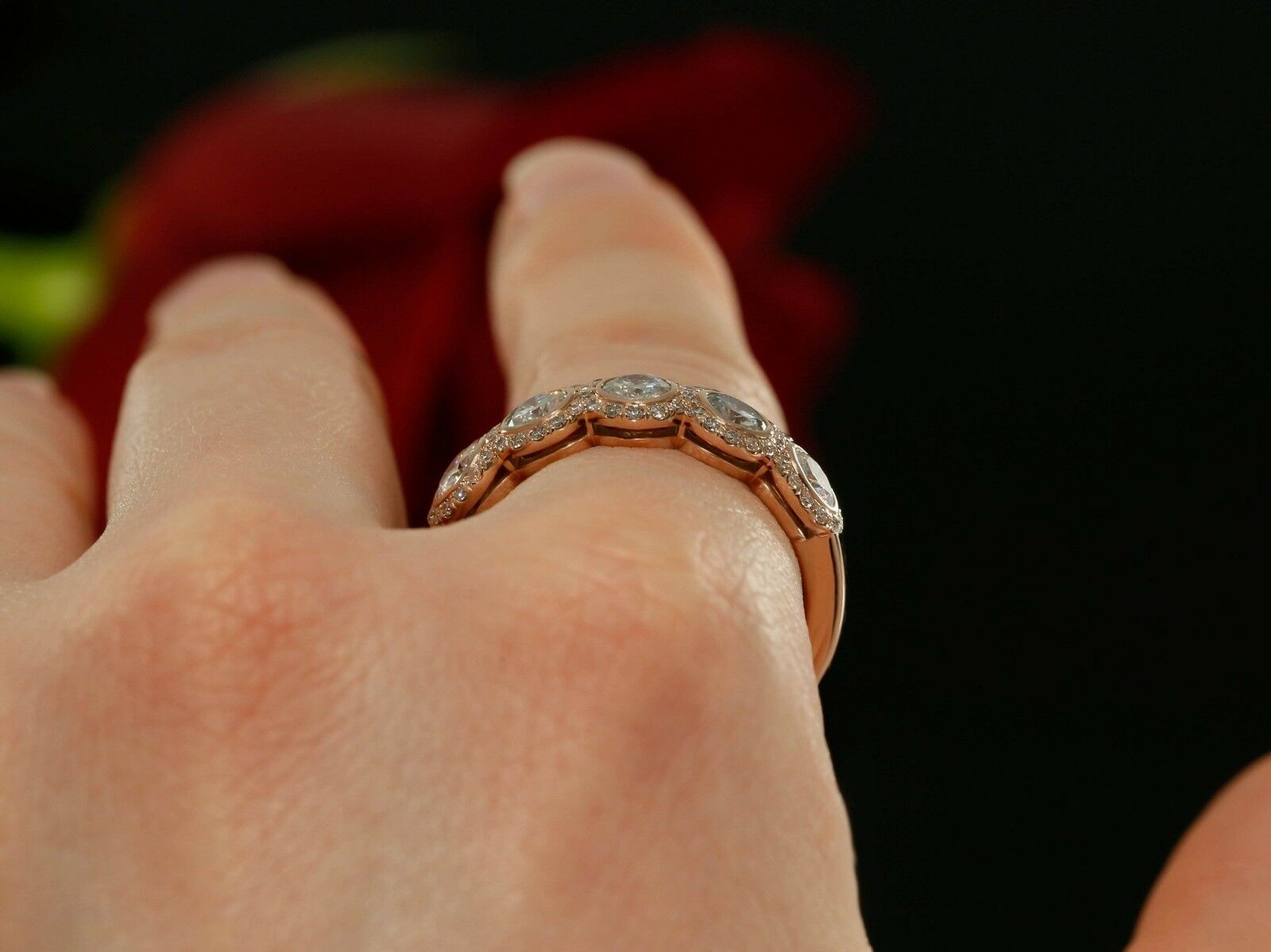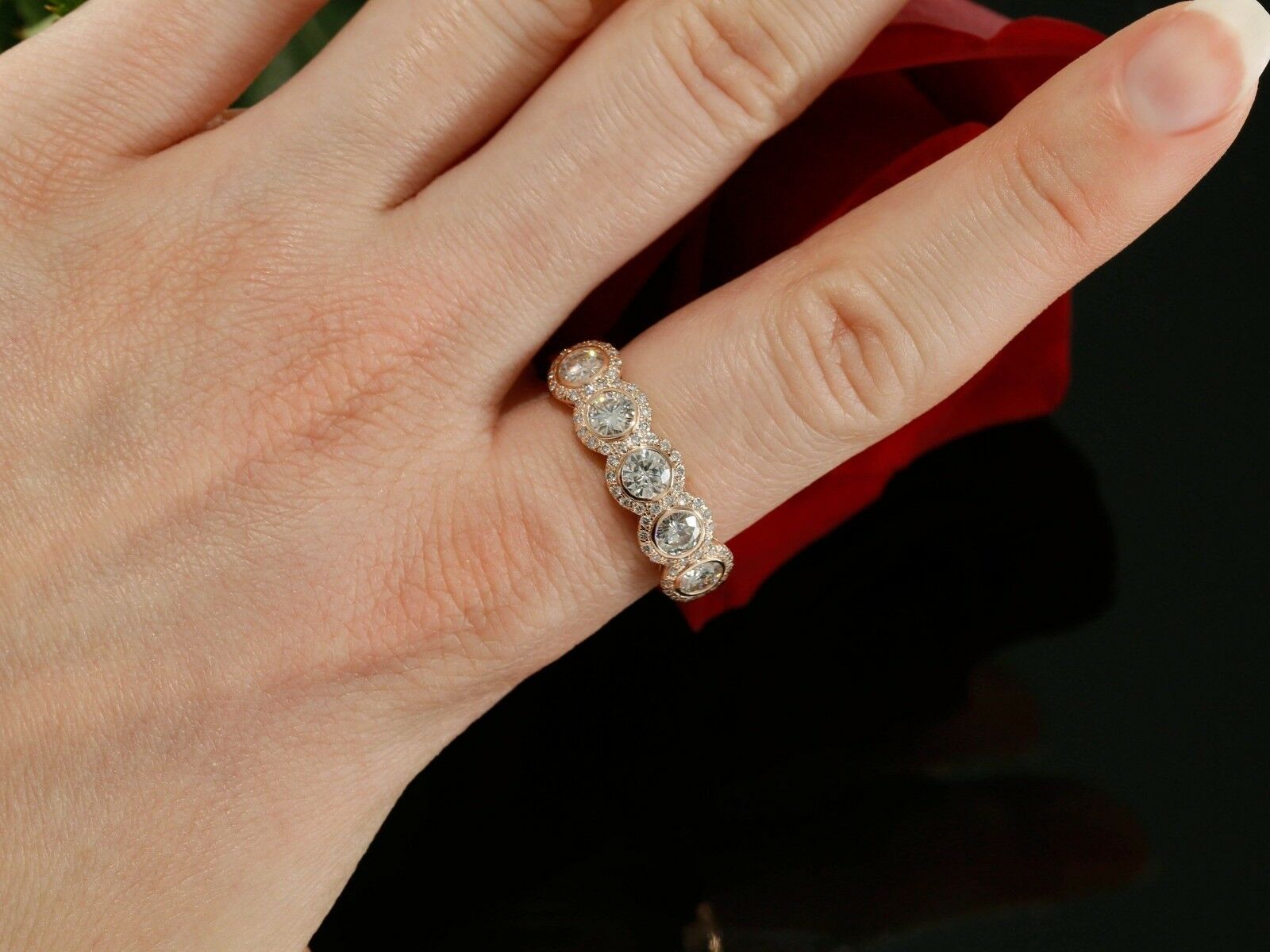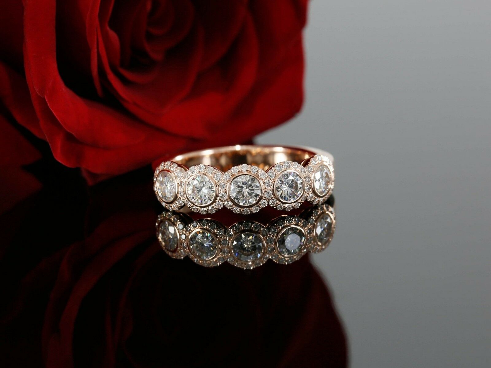 5ct Round Cut Diamond Five Stone Halo Gatsby Engagement Ring 14k Rose Gold Over