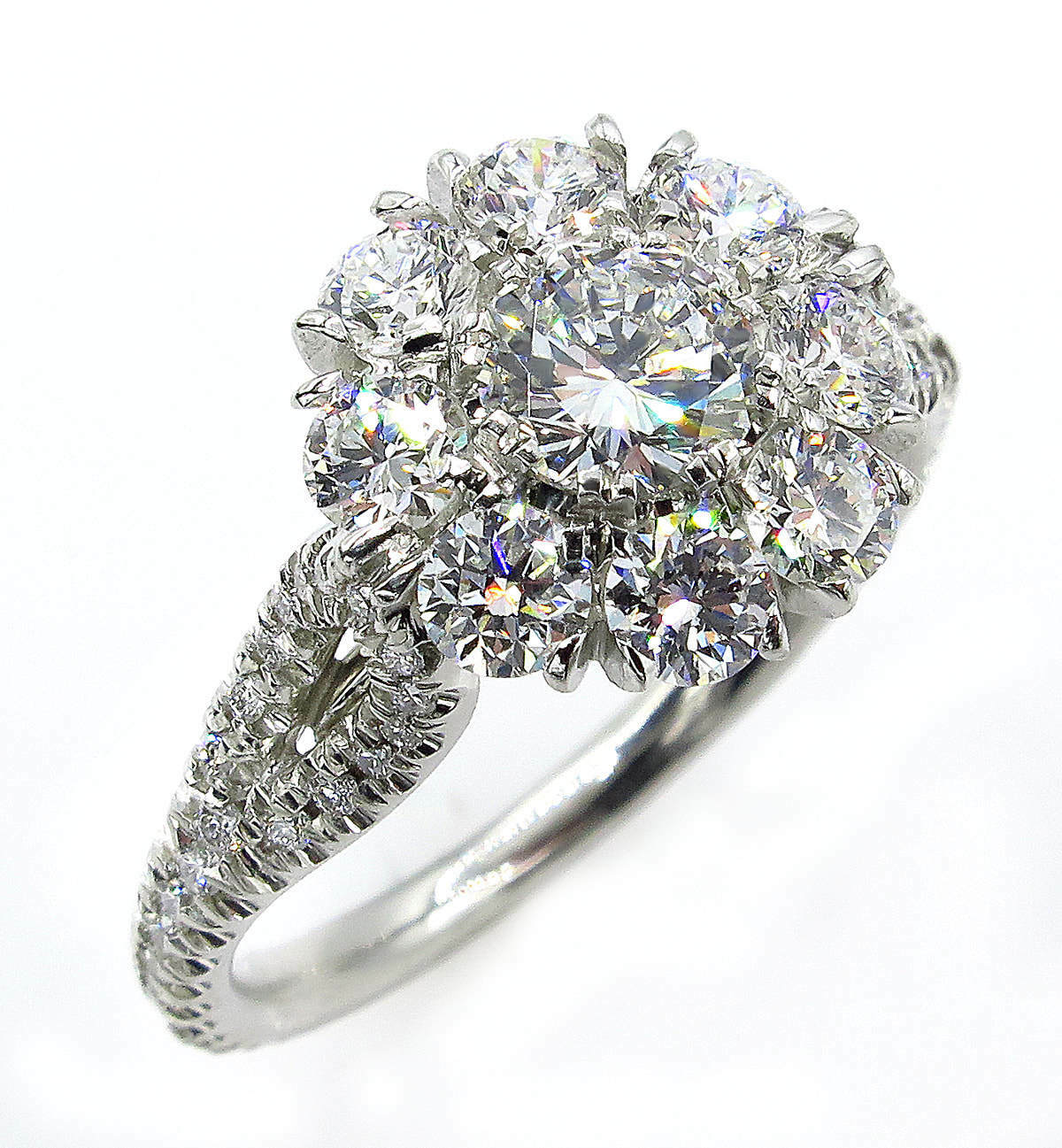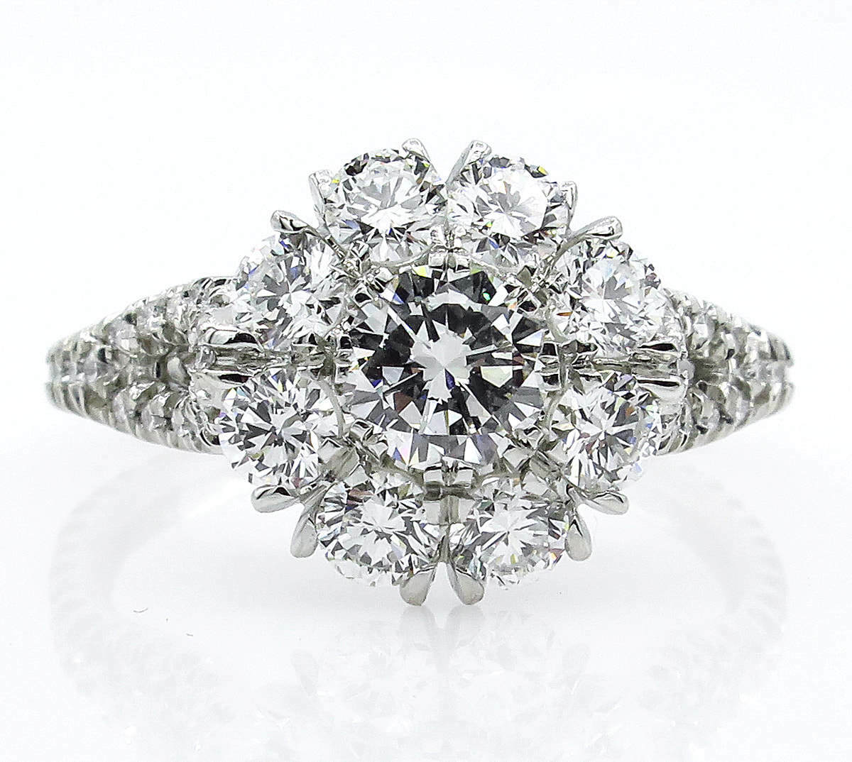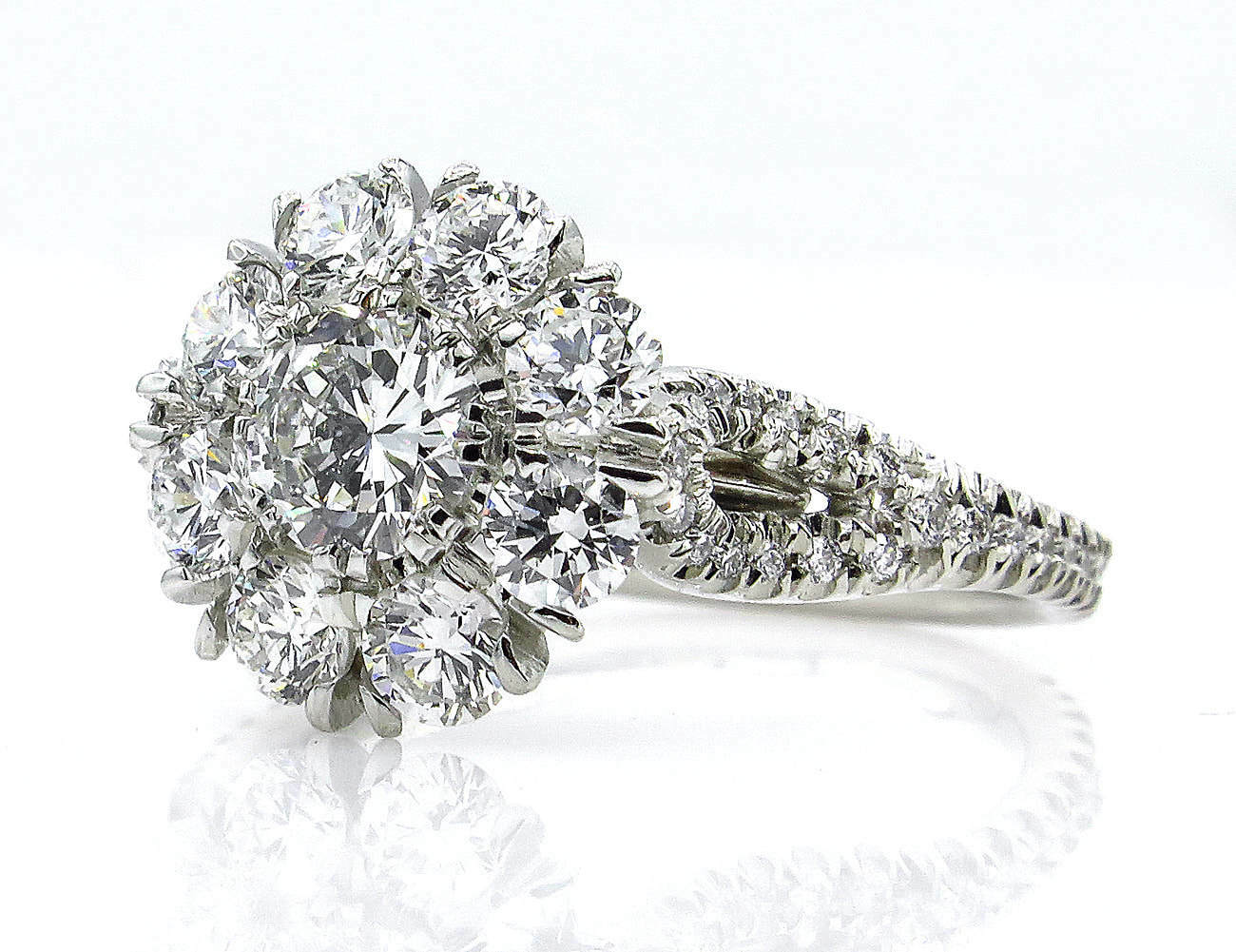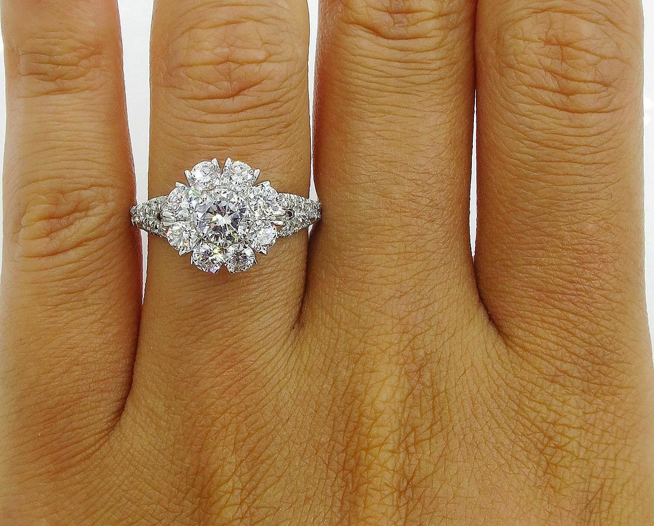 5Ct Round Cut Diamond Floral Iced Cocktail Engagement Ring 14K White Gold Finish