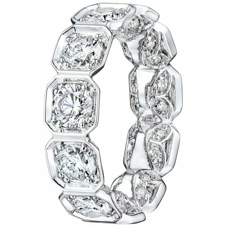 5ct Round Cut Diamond Wedding Ring Band Bezel Set Eternity 14k White Gold Finish