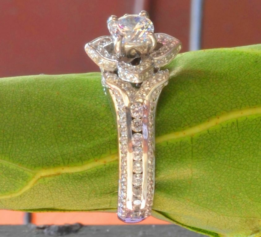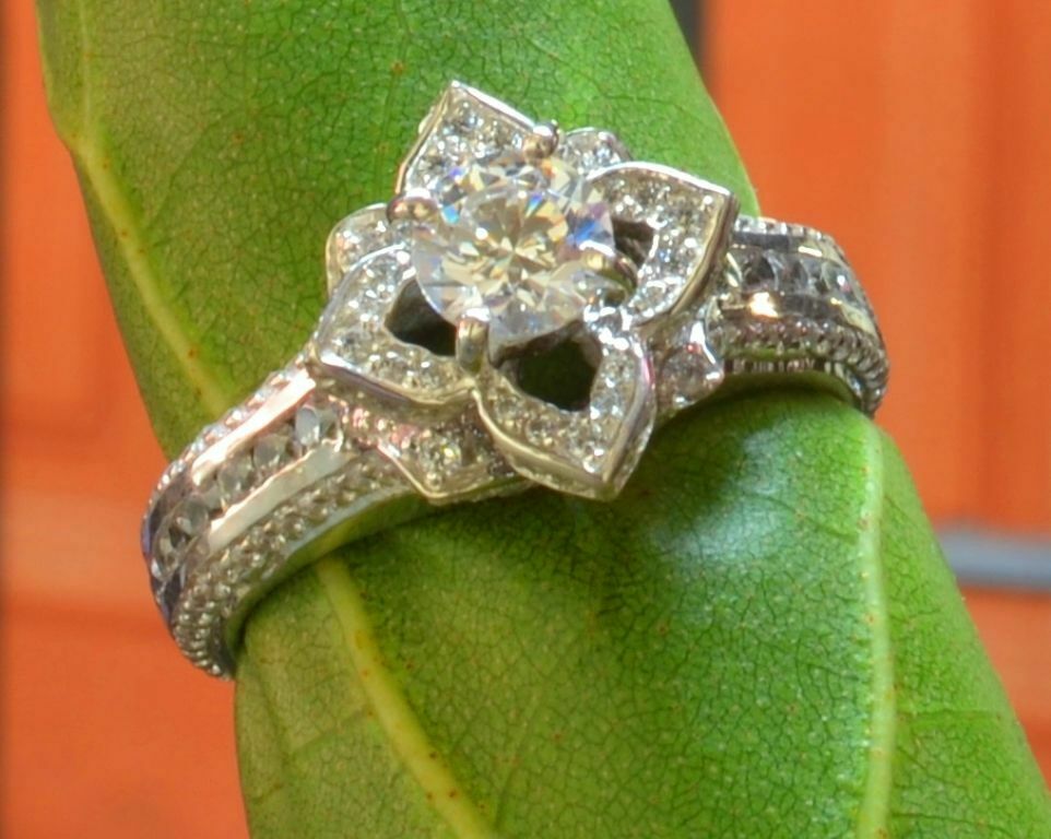 5Ct Round Cut DVVS1 Diamond Floral Inspired Engagement Ring 14K White Gold Over