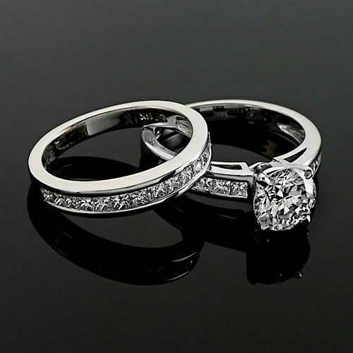 5Ct Round Princess Cut Diamond Bridal Set Engagement Ring 14K White Gold Finish