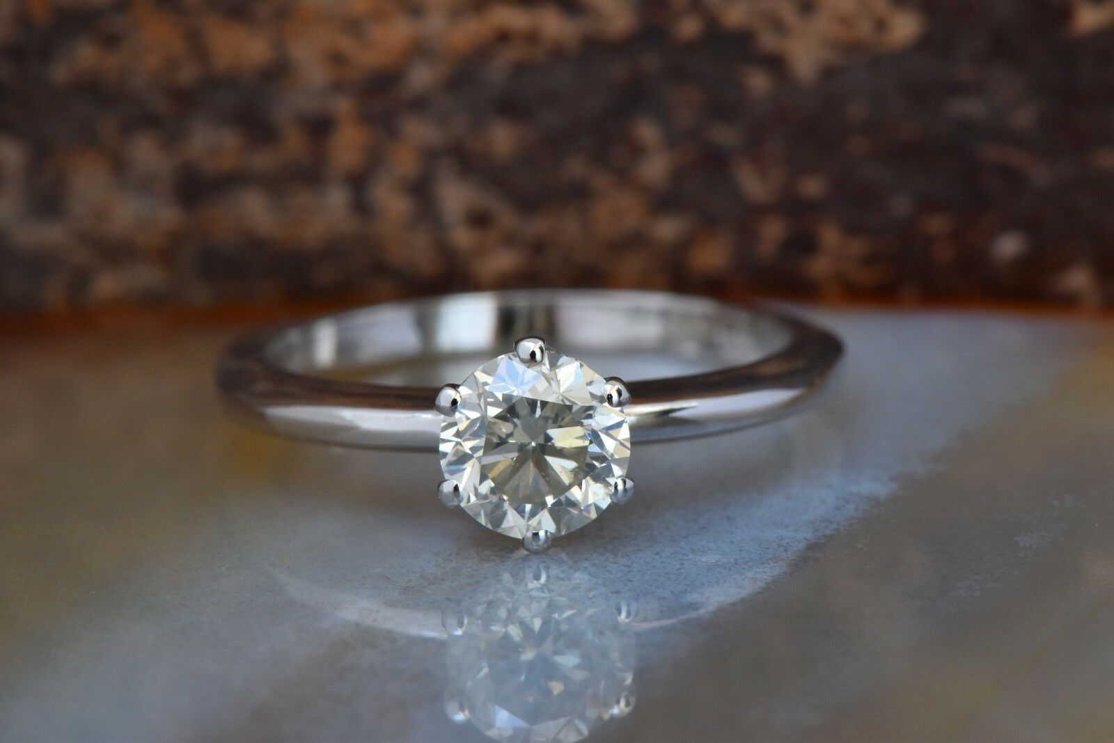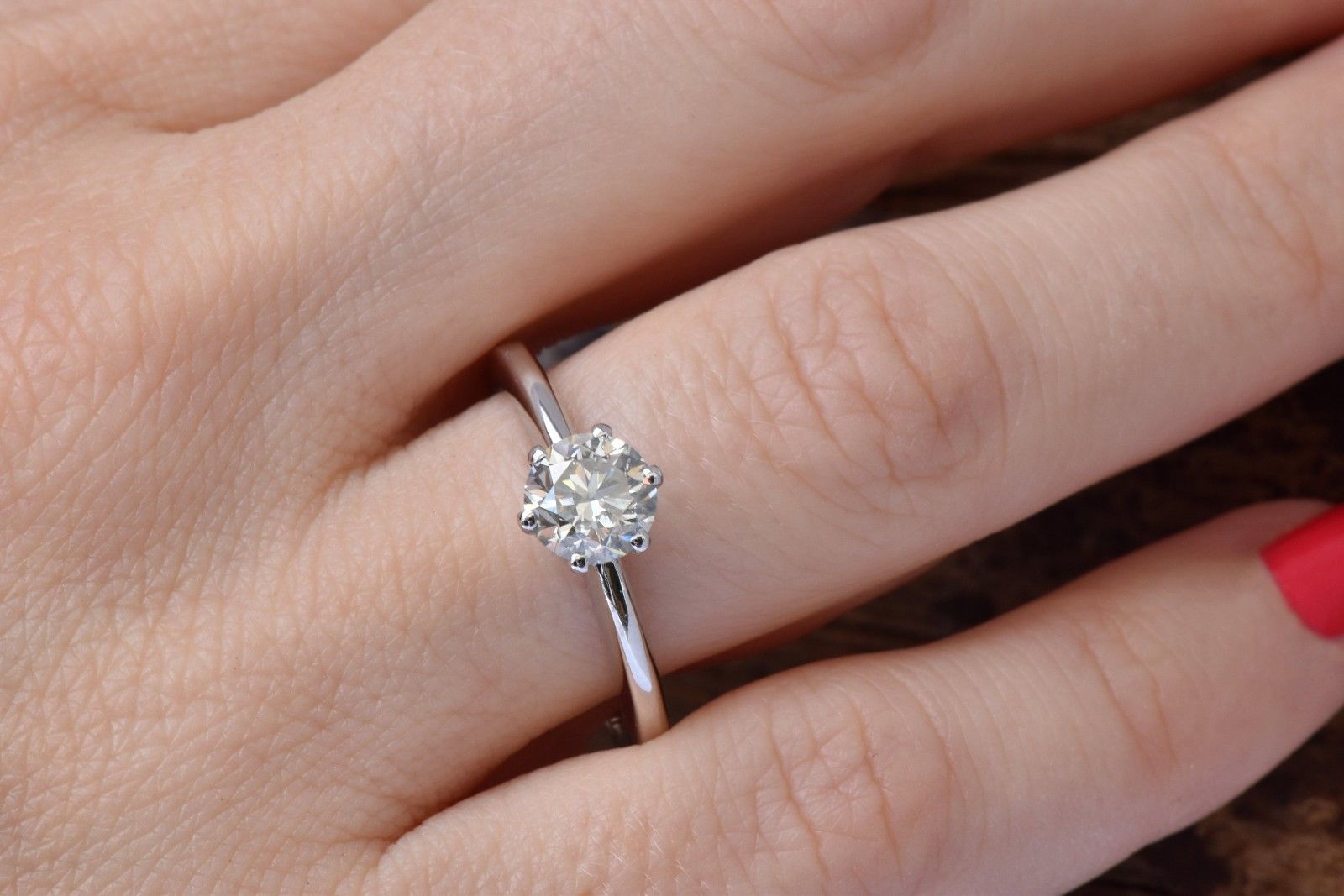 6 Prong Solitaire Engagement Ring 0.5ct Round Cut Diamond 14k White Gold Finish