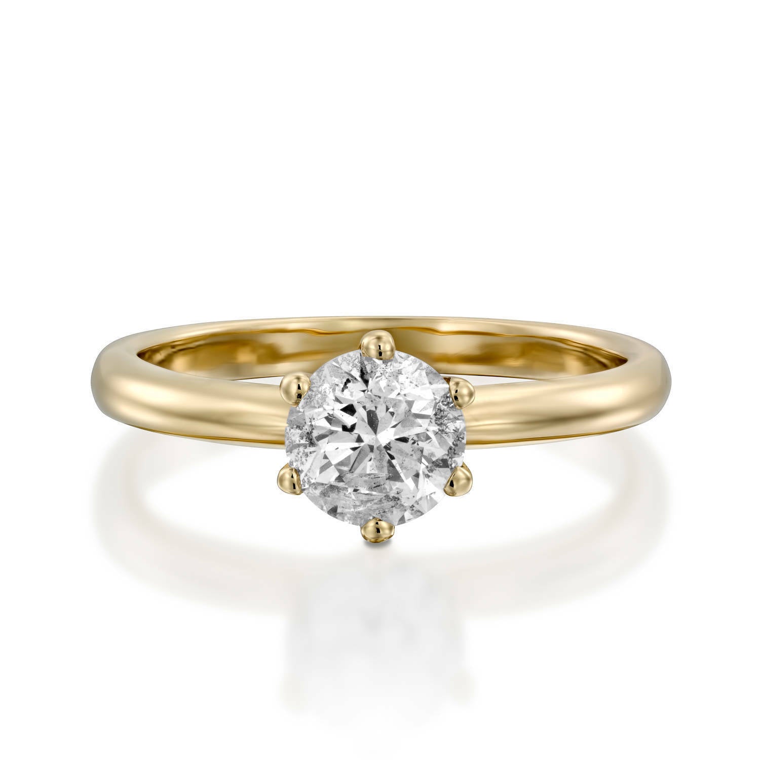6 Prong Solitaire Engagement Ring 1ct Round Cut Diamond 14k Yellow Gold Finish