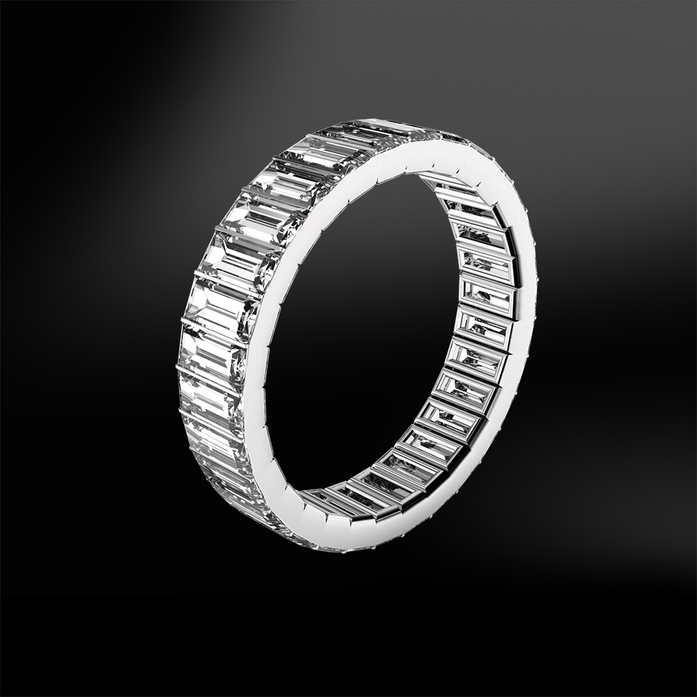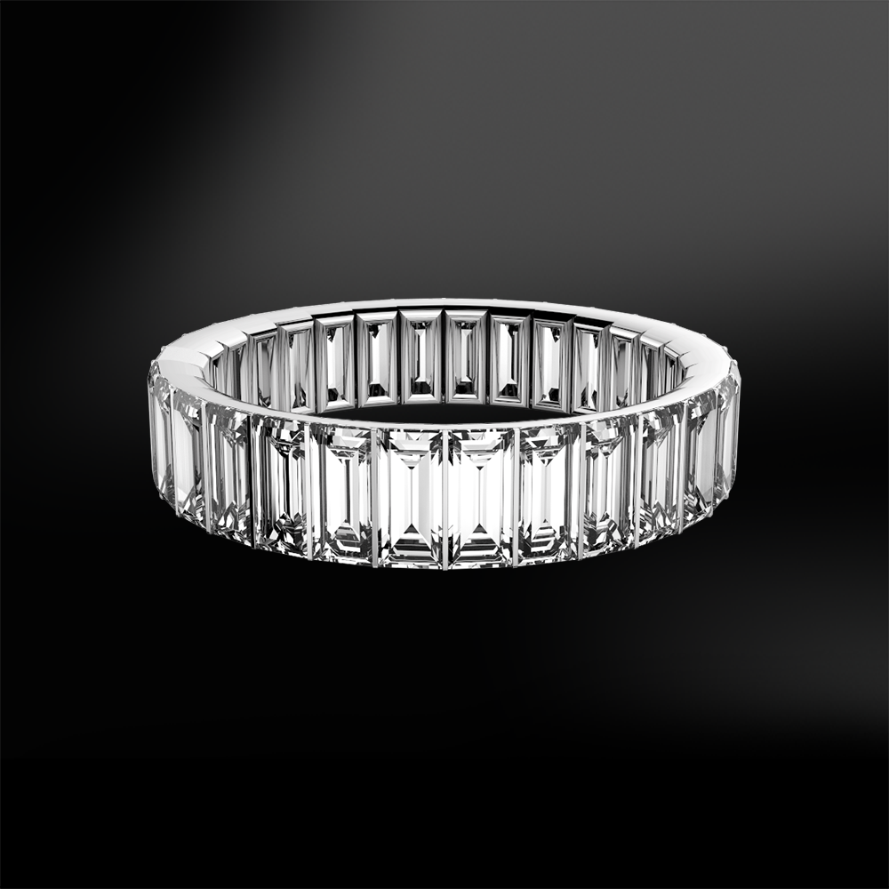 6Ct Baguette Cut Diamond Iced Eternity Queens Wedding Band 14K White Gold Finish