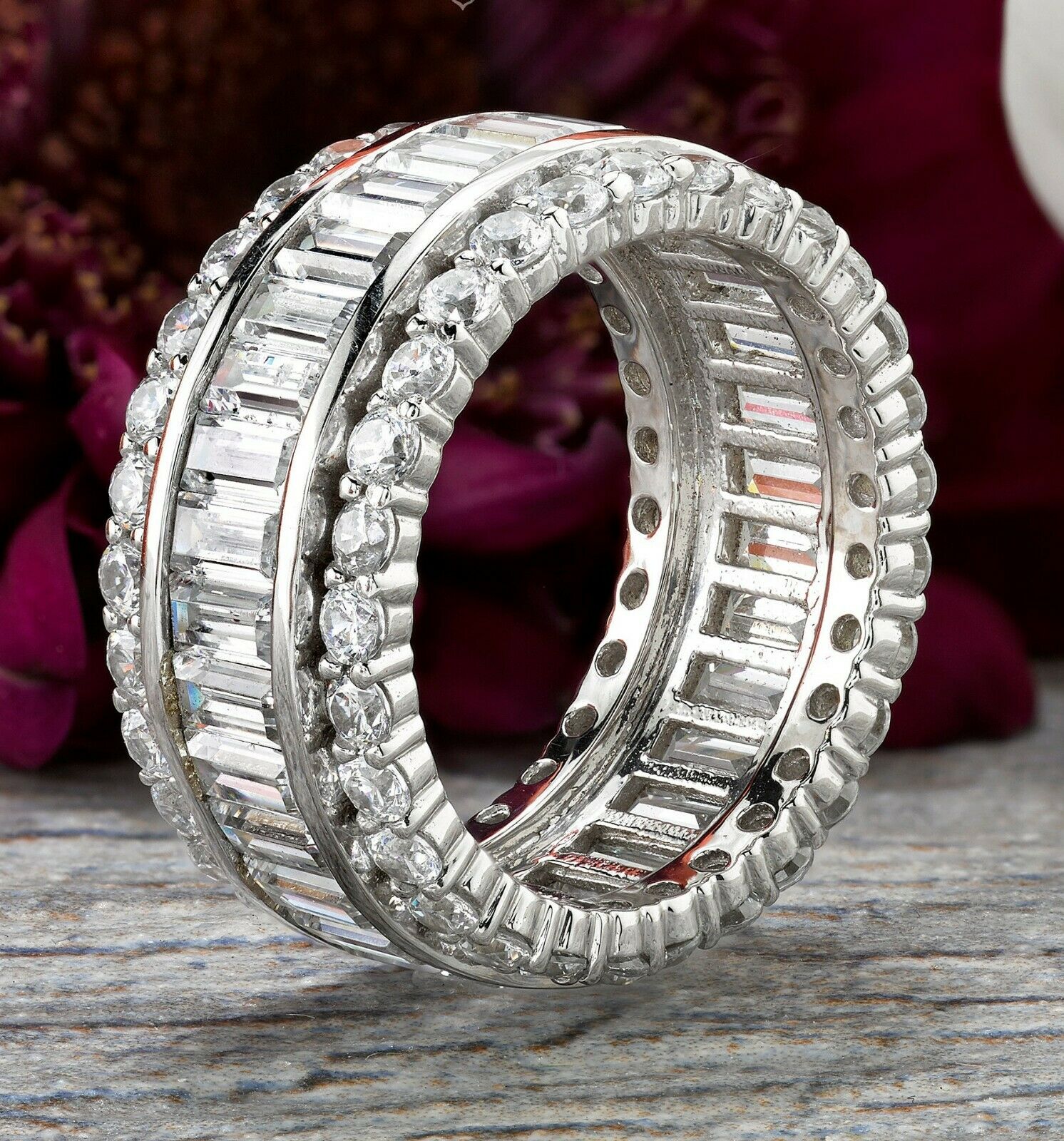 6Ct Baguette Round Diamond Cocktail Eternity Wedding Band 14K White Gold Finish