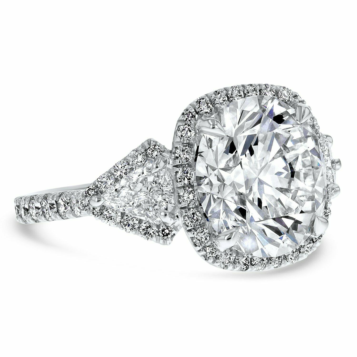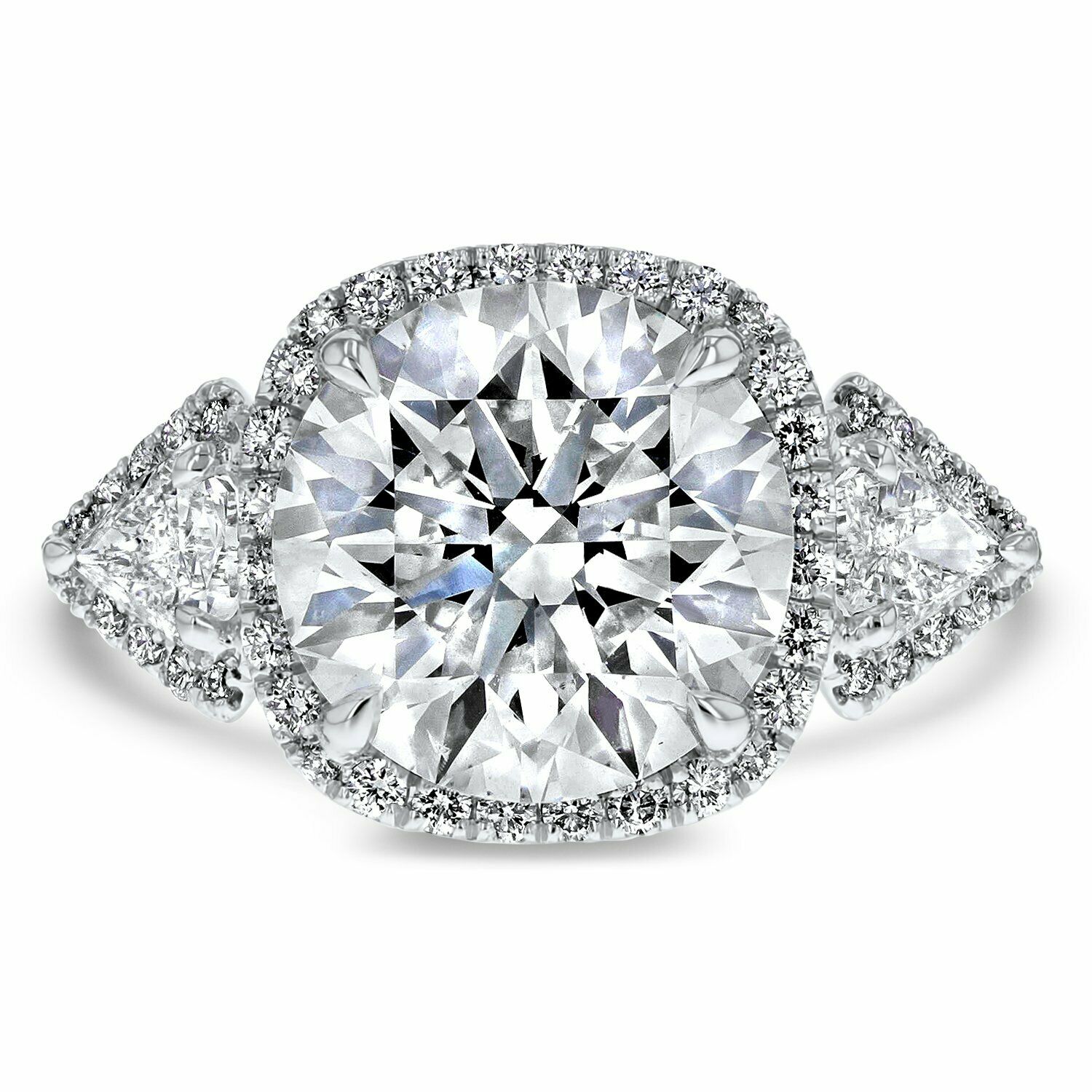 6ct Engagement Ring Round Cut Diamond Trilogy Halo Design 14k White Gold Finish