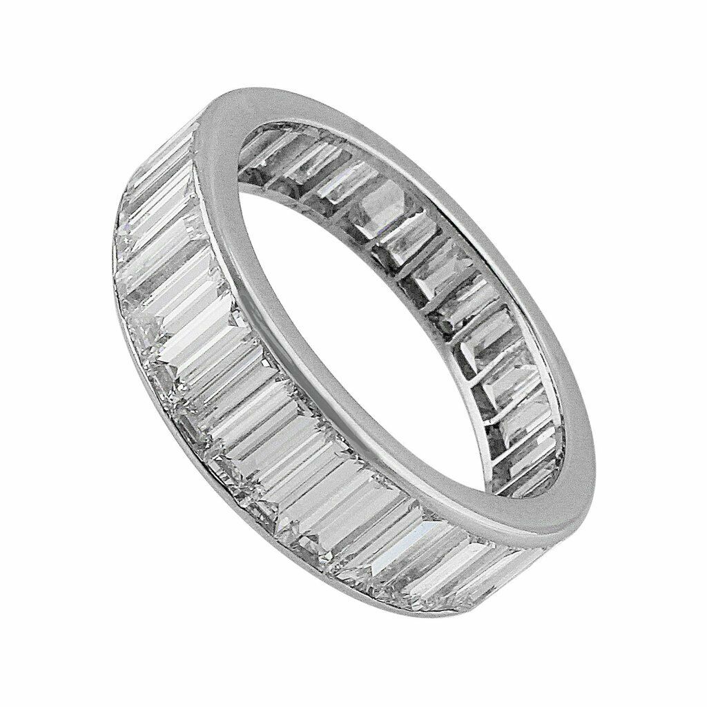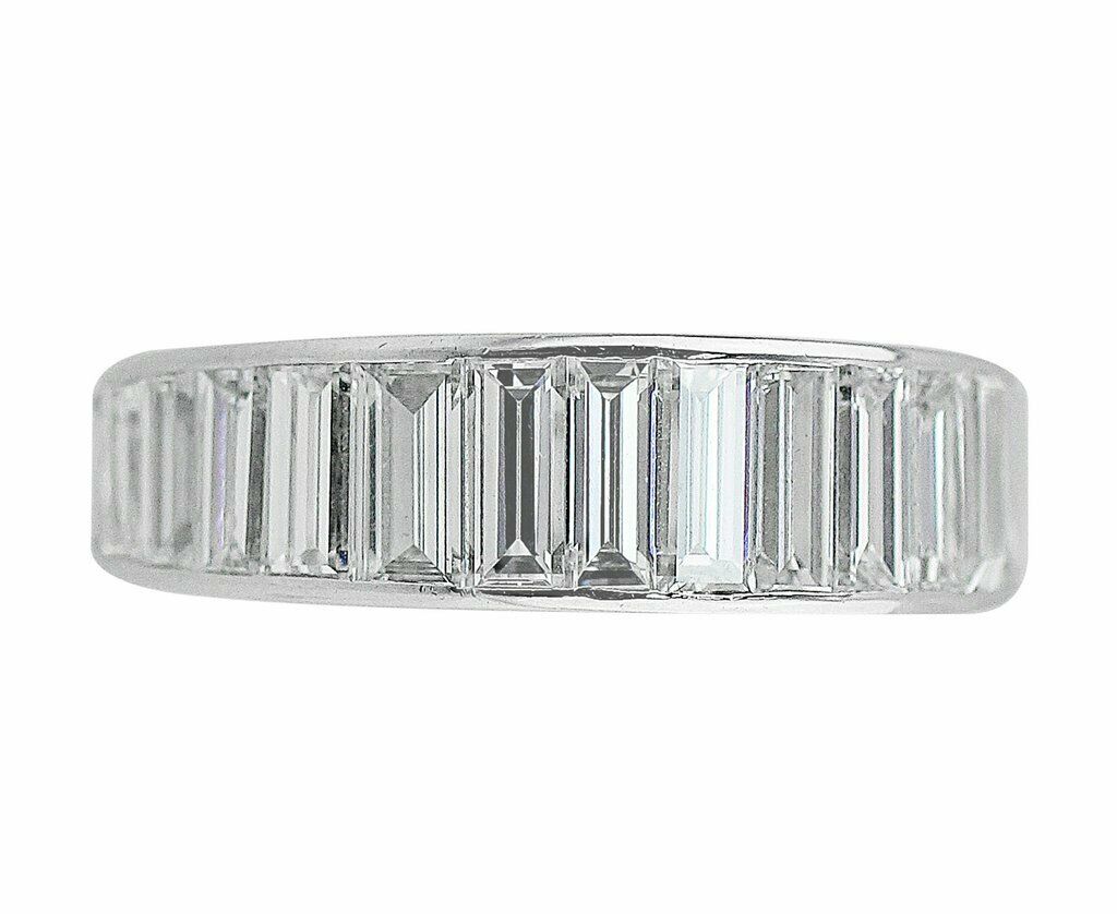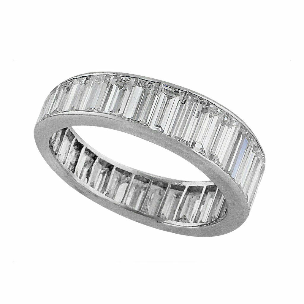 6Ct Graduated Emerald Cut Diamond Full Eternity Wedding Band 14K White Gold Over