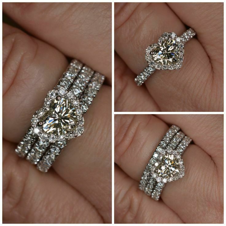 6Ct Heart Cut Diamond Wedding Bridal Trio Set Halo Ring Band 14K White Gold Over
