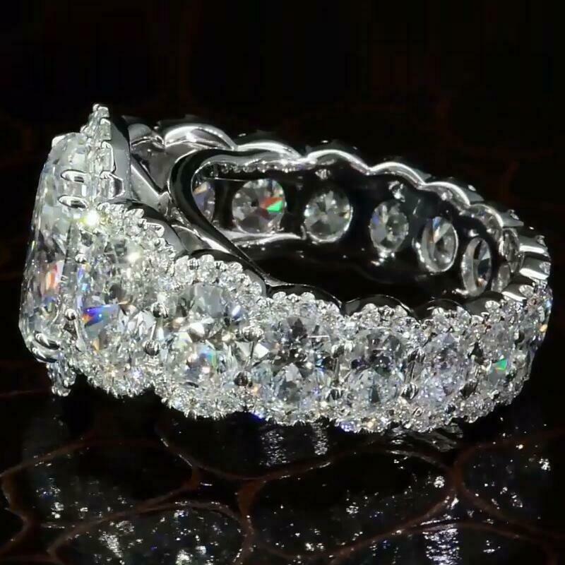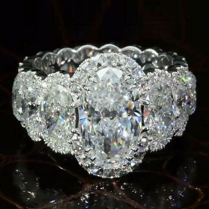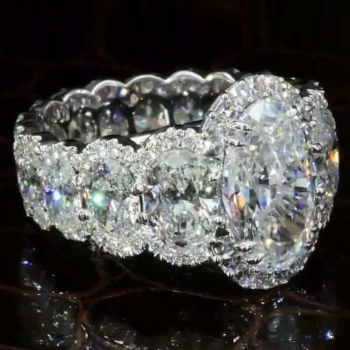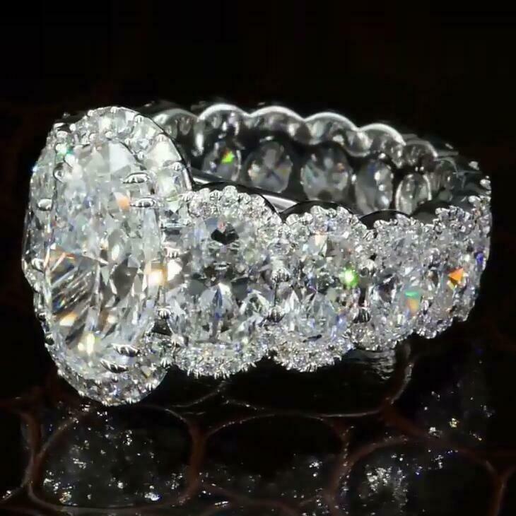 6Ct Oval Diamond Halo Eternity Cocktail Engagement Ring 14K White Gold Finish