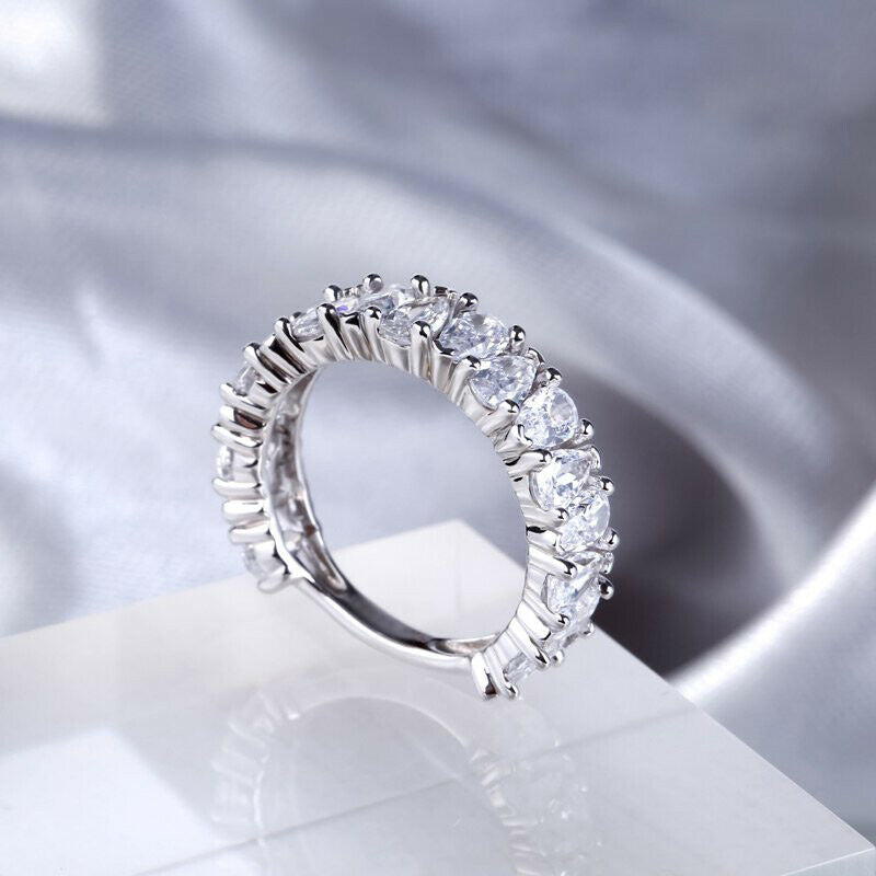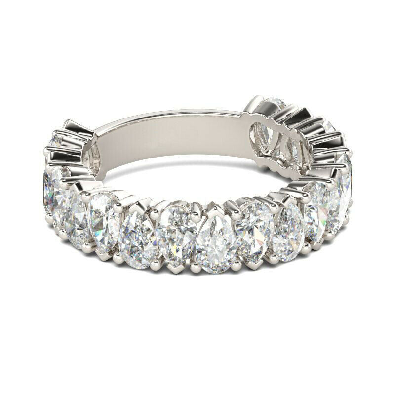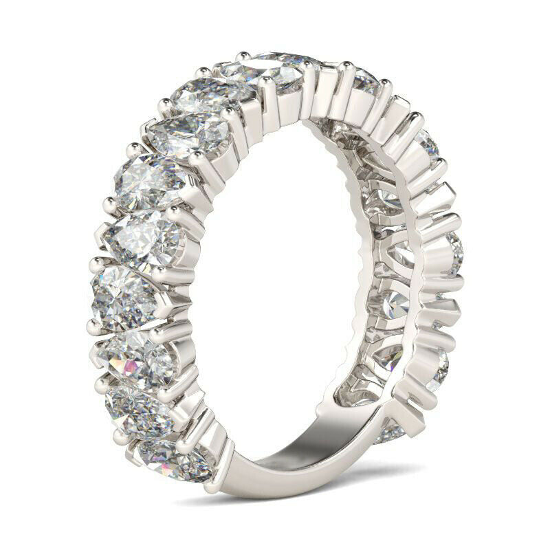 6Ct Pear Cut Diamond Alternating Iced Wedding Band Ring 14K White Gold Finish