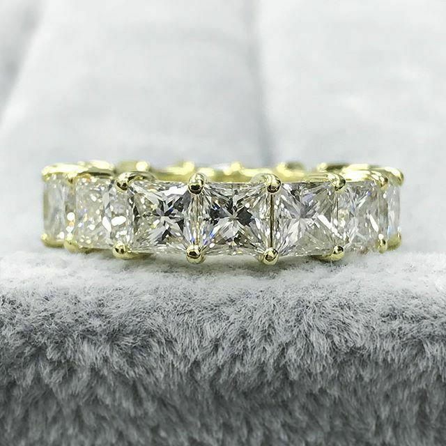 6Ct Princess Cut Diamond Women Wedding Band 14K Yellow Gold Finish Full Eternity