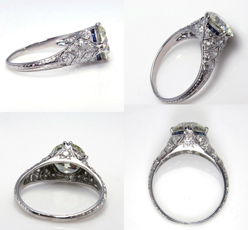 6Ct Round Cut Diamond Art Deco Vintage Engagement Ring 14K White Gold Finish