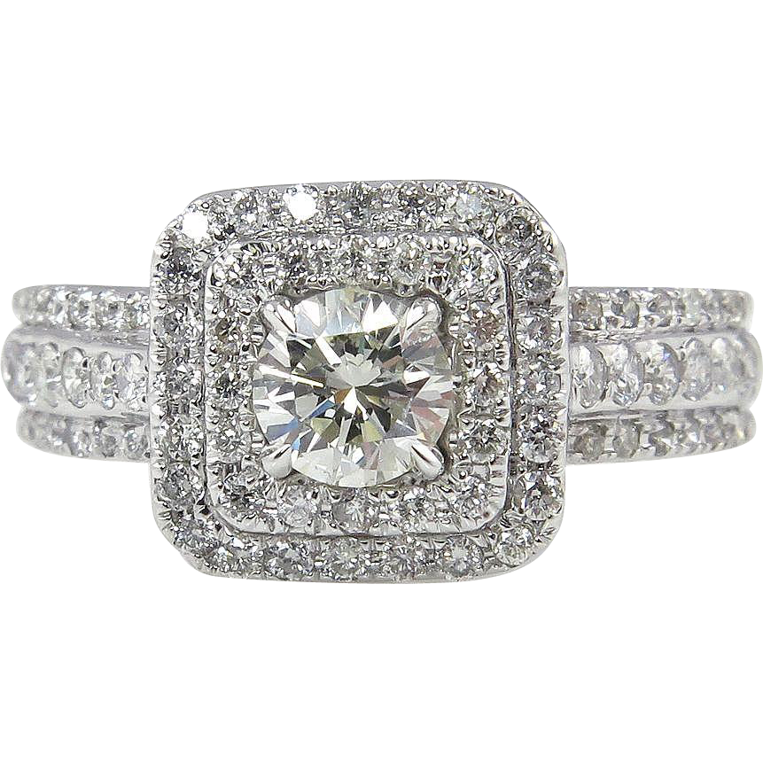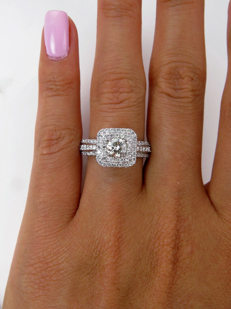 6Ct Round Cut Diamond Dual Halo Cluster Engagement Ring 14K White Gold Finish