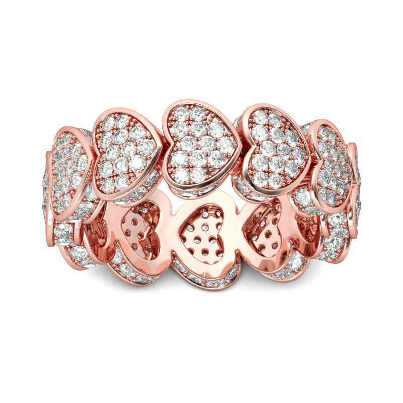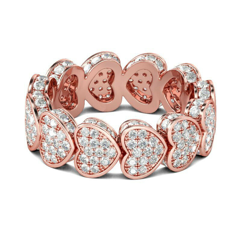 6Ct Round Cut DVVS1 Diamond Heart Love Eternity Wedding Band 14K Rose Gold Over