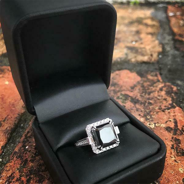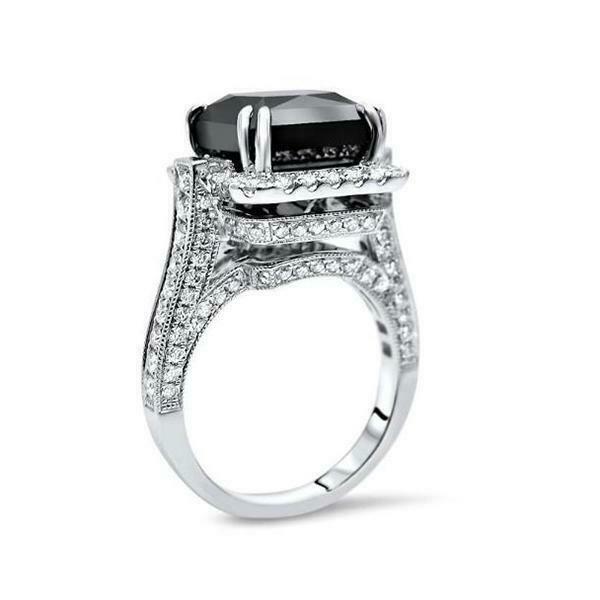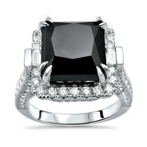 7Ct Princess Cut Black Diamond Queens Vintage Cocktail Ring 14K White Gold Over