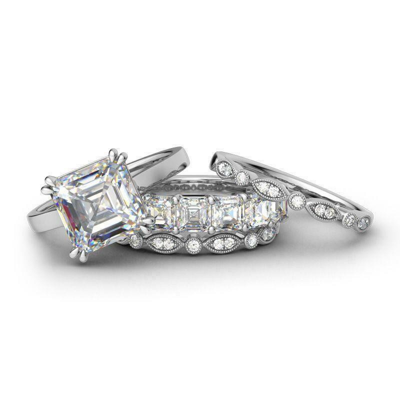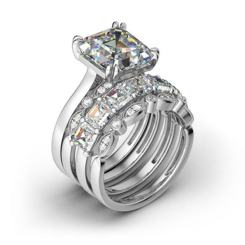 8Ct Asscher Cut Diamond Quartet Engagement Ring Vintage Band 14K White Gold Over
