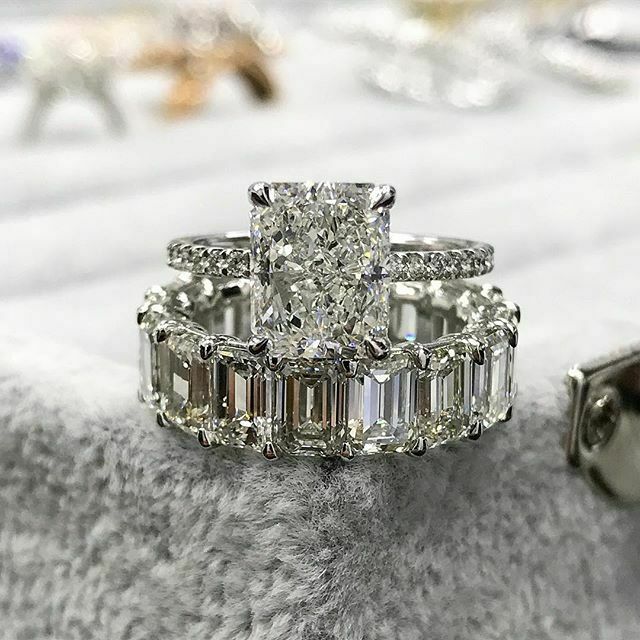 8Ct Radiant Cut Solitaire Ring Iced Eternity Band Bridal Set 14K White Gold Over