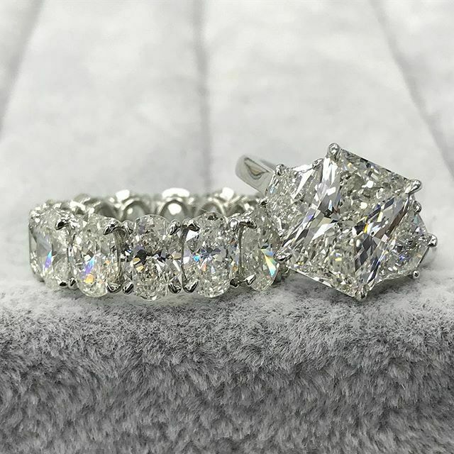 9Ct Diamond Bridal Set Radiant Cut Trilogy Ring Oval Band 14K White Gold Finish