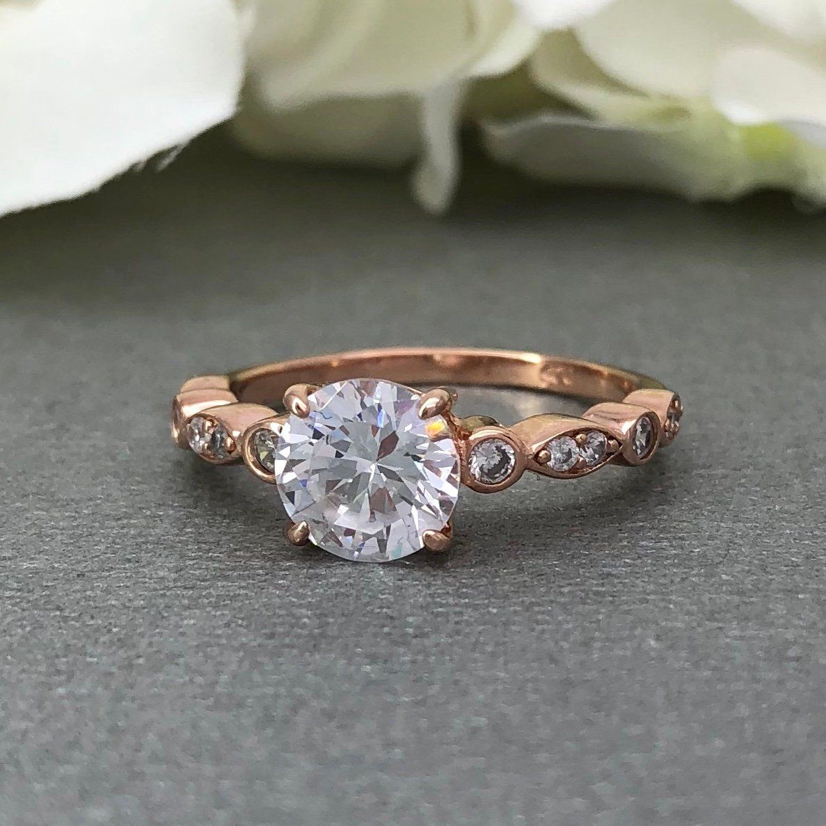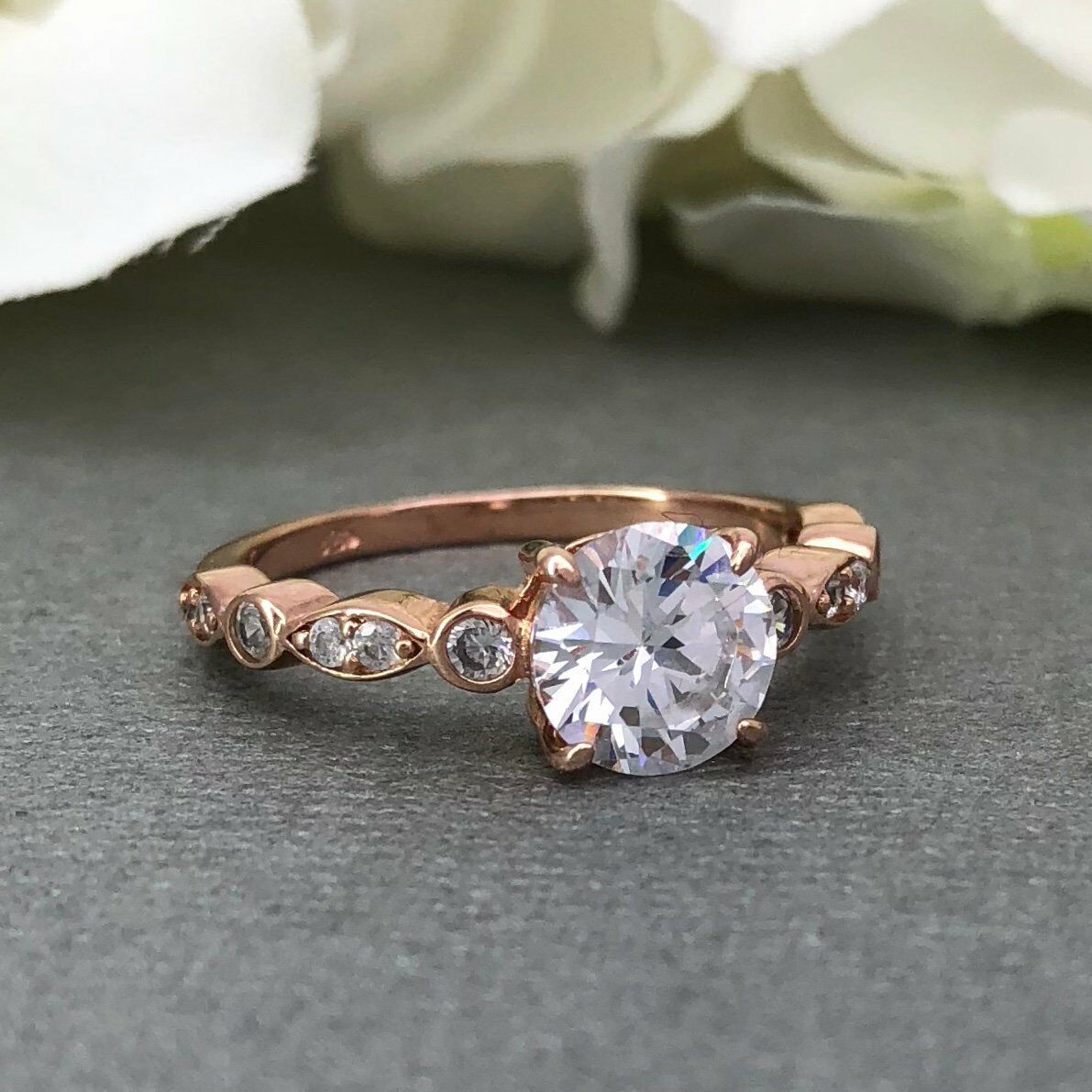Accents Solitaire Engagement Ring 1.5ct Round Cut Diamond 14k Rose Gold Finish