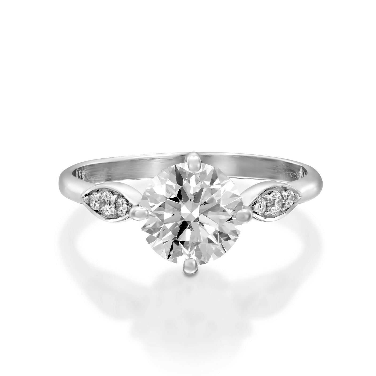 Accents Solitaire Engagement Ring 1.8ct Round Cut Diamond 14k White Gold Finish