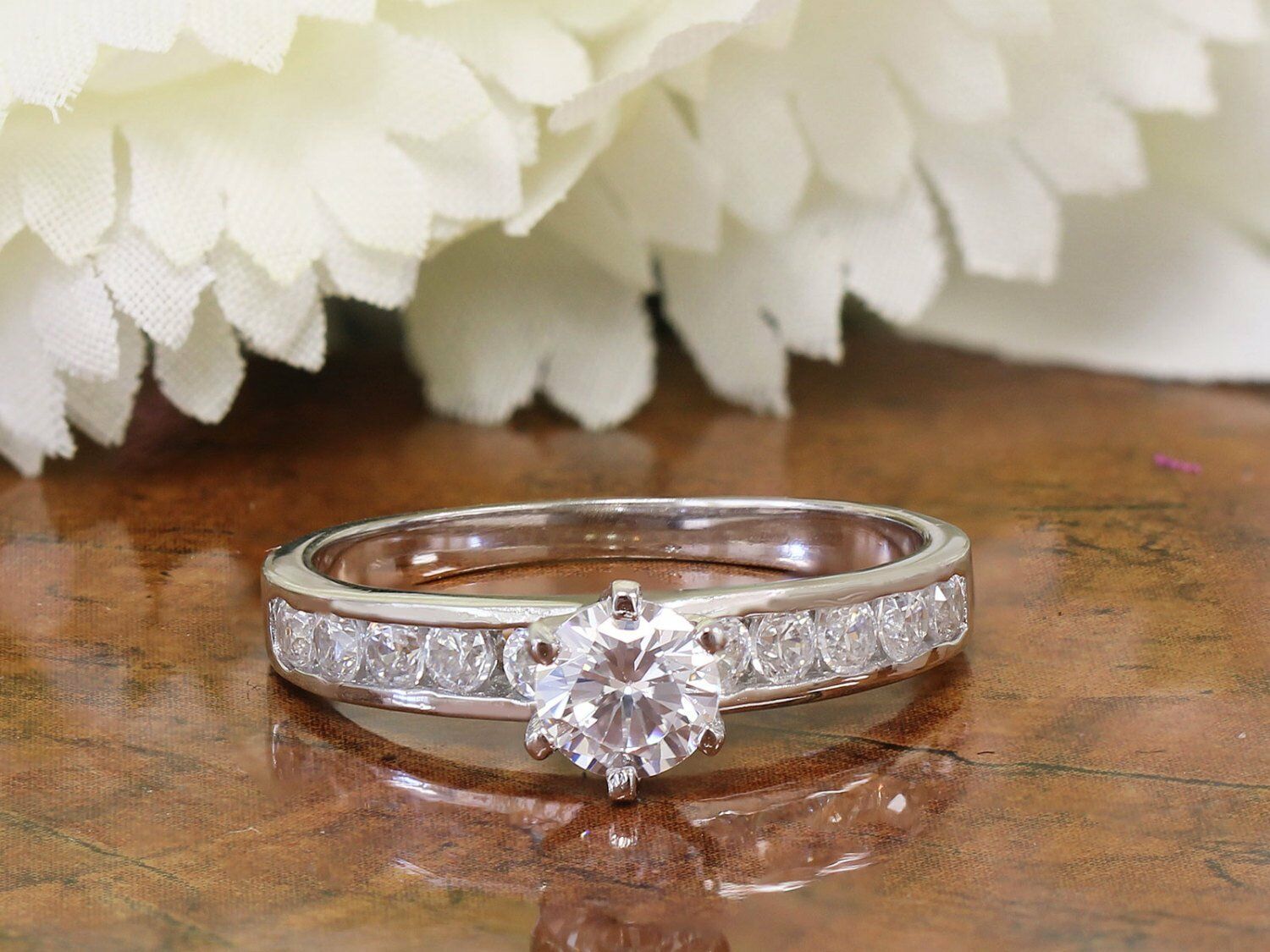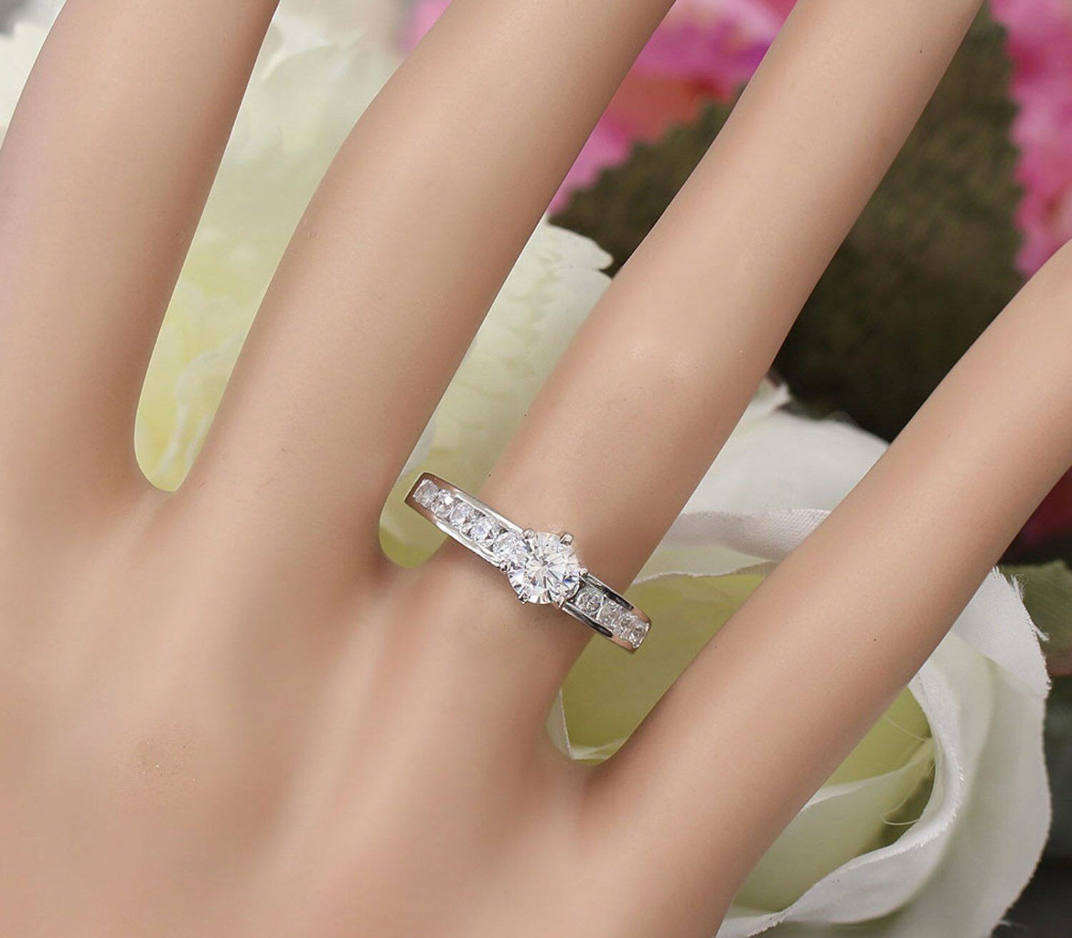 Accents Solitaire Engagement Ring 1.9ct Round Cut Diamond 14k White Gold Finish