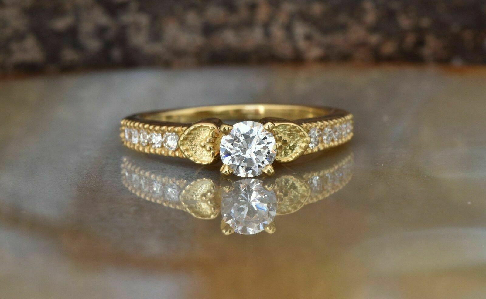 Accents Solitaire Engagement Ring 2.2ct Round Cut Diamond 14k Yellow Gold Finish