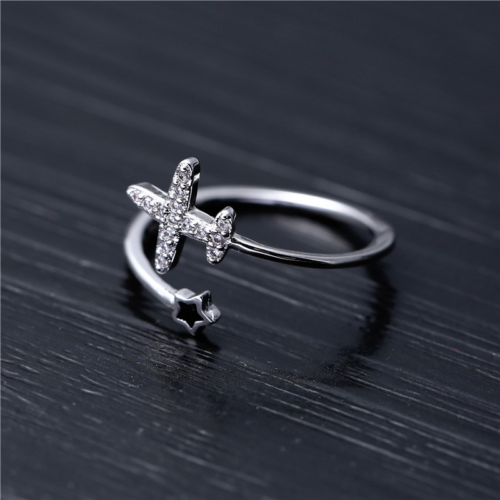 Aeroplane Design Engagement Ring 1.7ct Round Cut Diamond 14k White Gold Finish