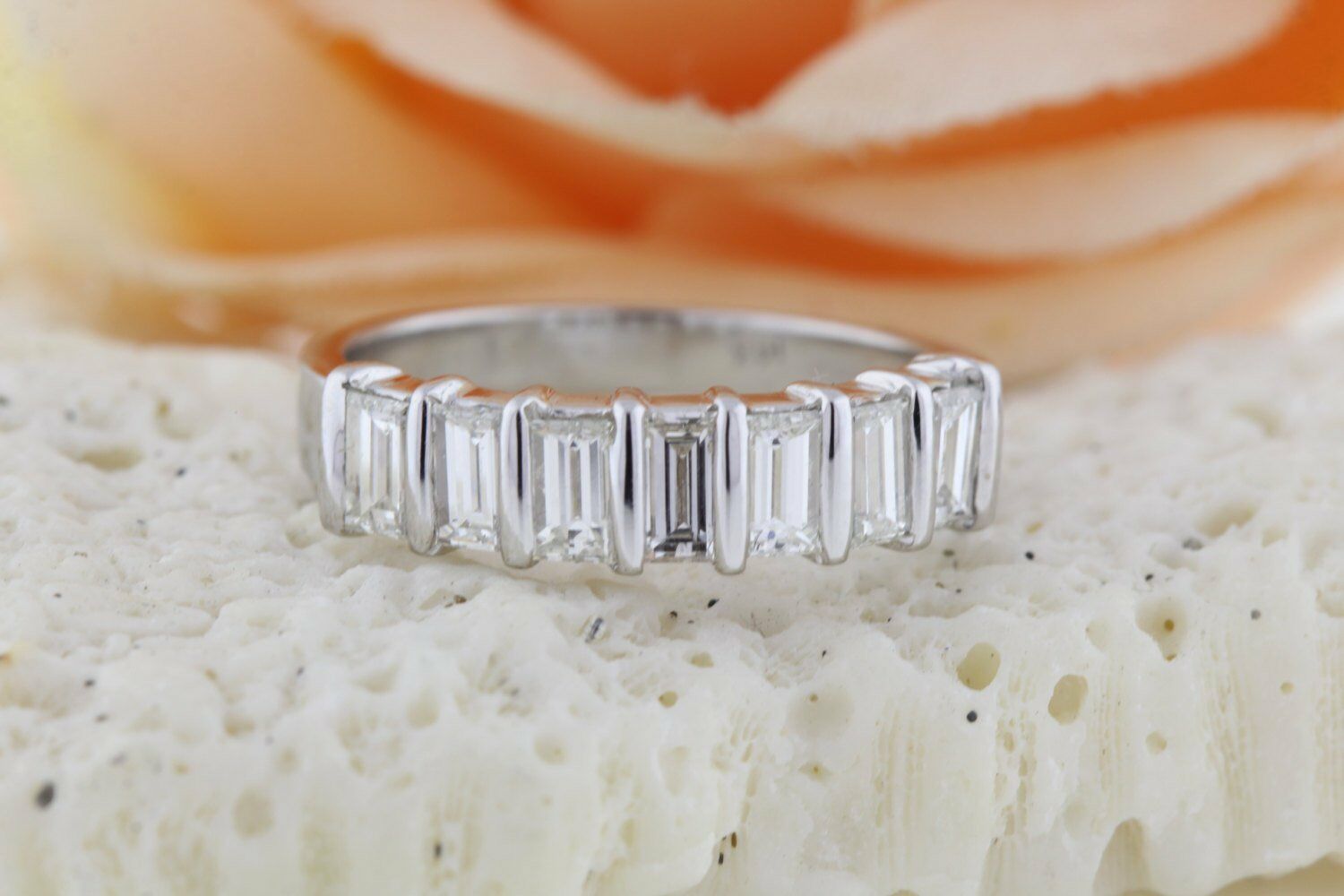 Anniversary Bar Set Wedding Ring Band 0.8ct Baguette Diamond 14k White Gold Over