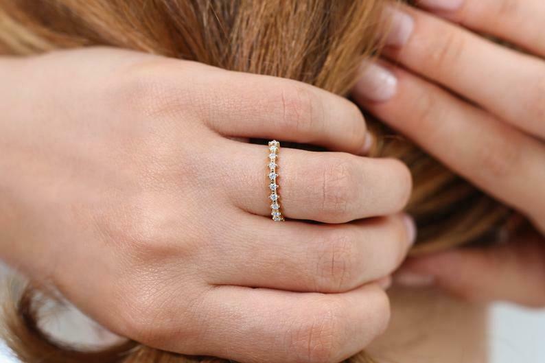 Anniversary Wedding Ring Band 0.6ct Princess Cut Diamond 14k Yellow Gold Finish