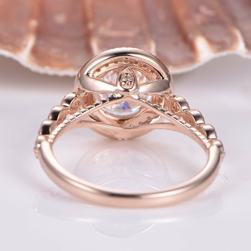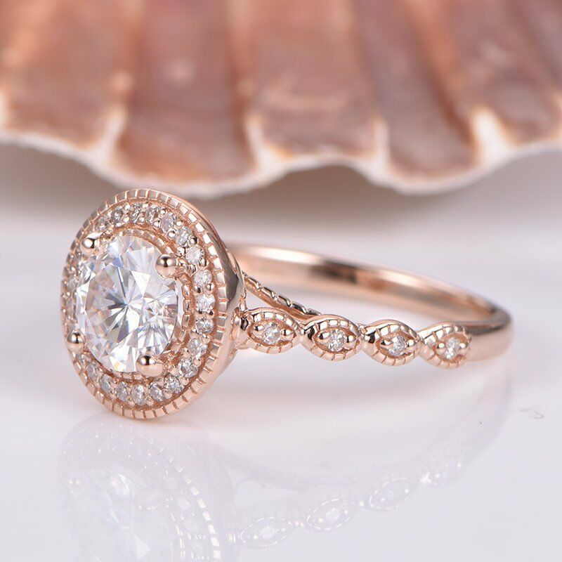 Antique Halo Engagement Ring 1.8ct Round Cut VVS1D Diamond 14k Rose Gold Finish