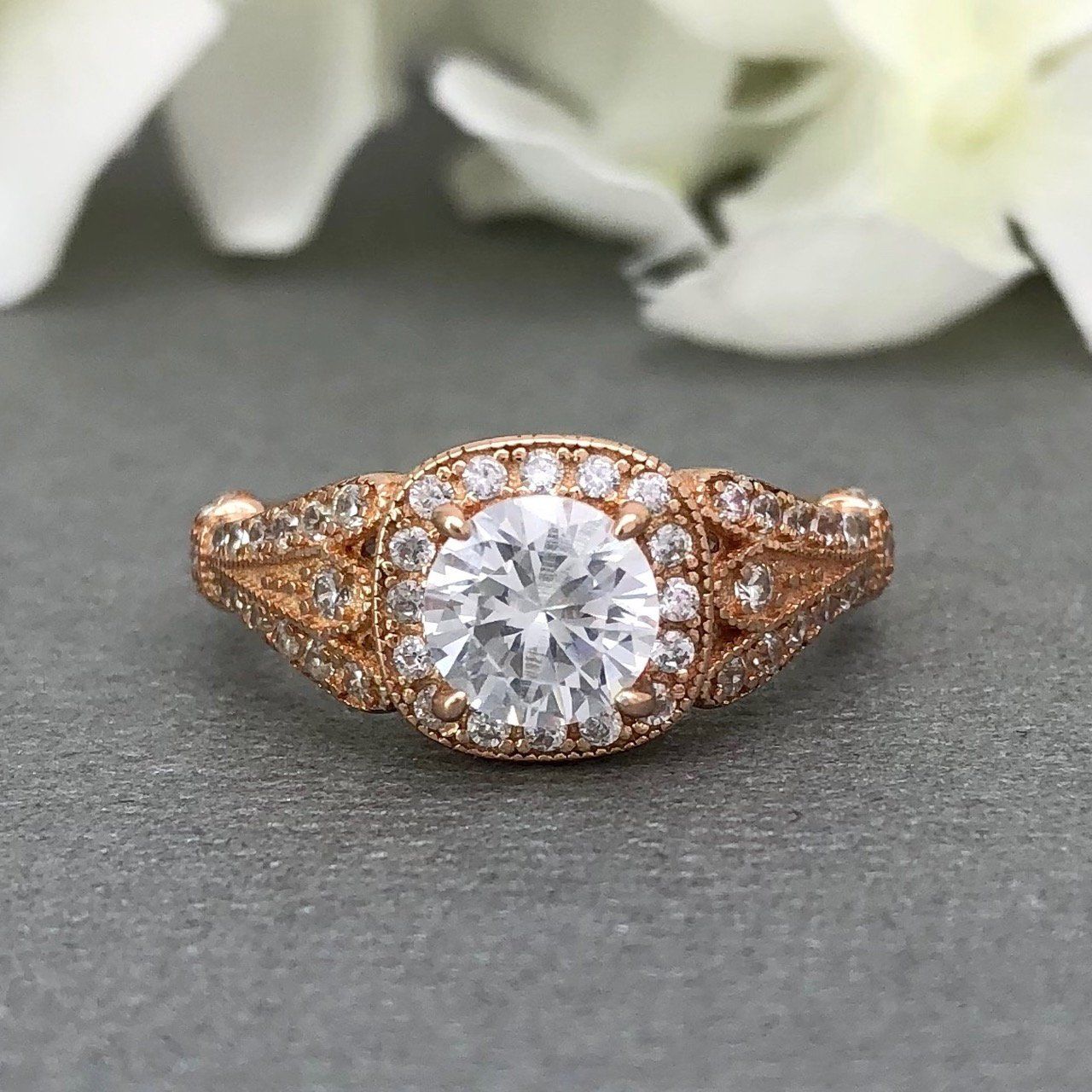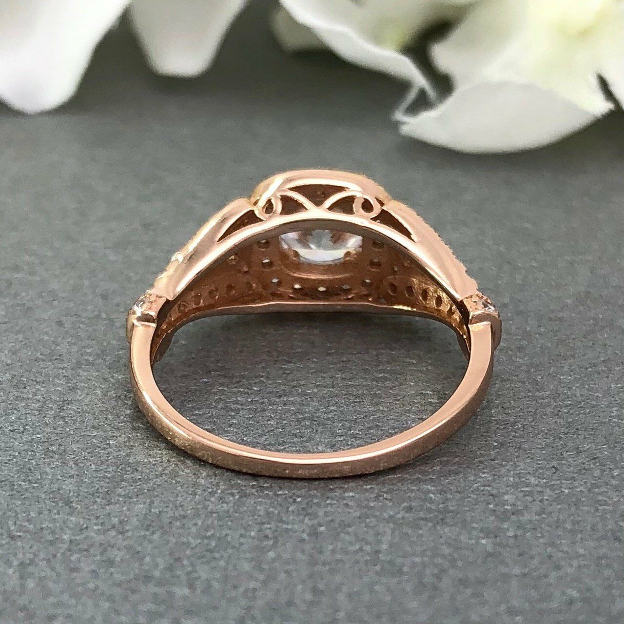 Antique Vintage Engagement Ring 2ct Round Cut VVS1D Diamond 14k Rose Gold Finish