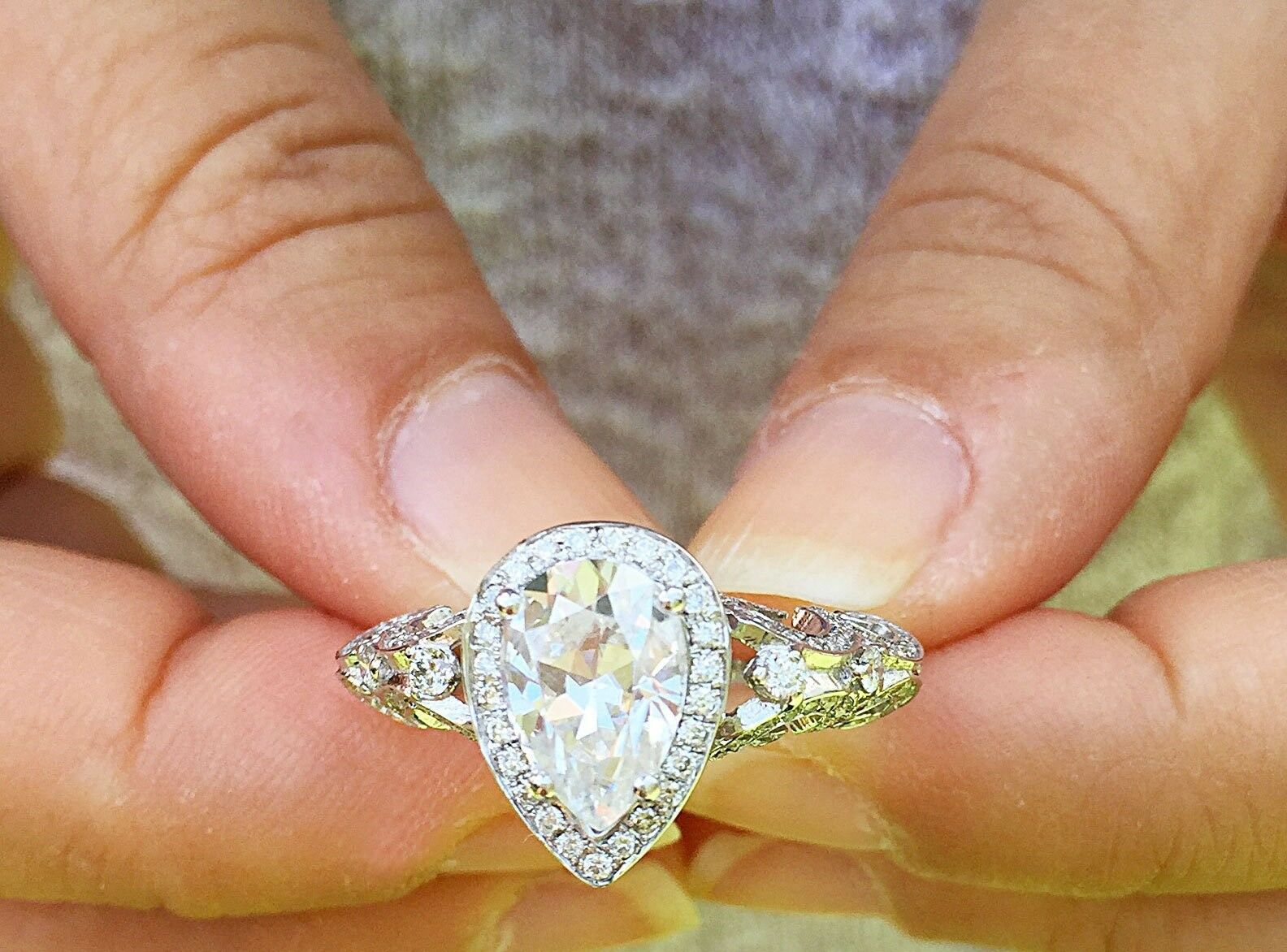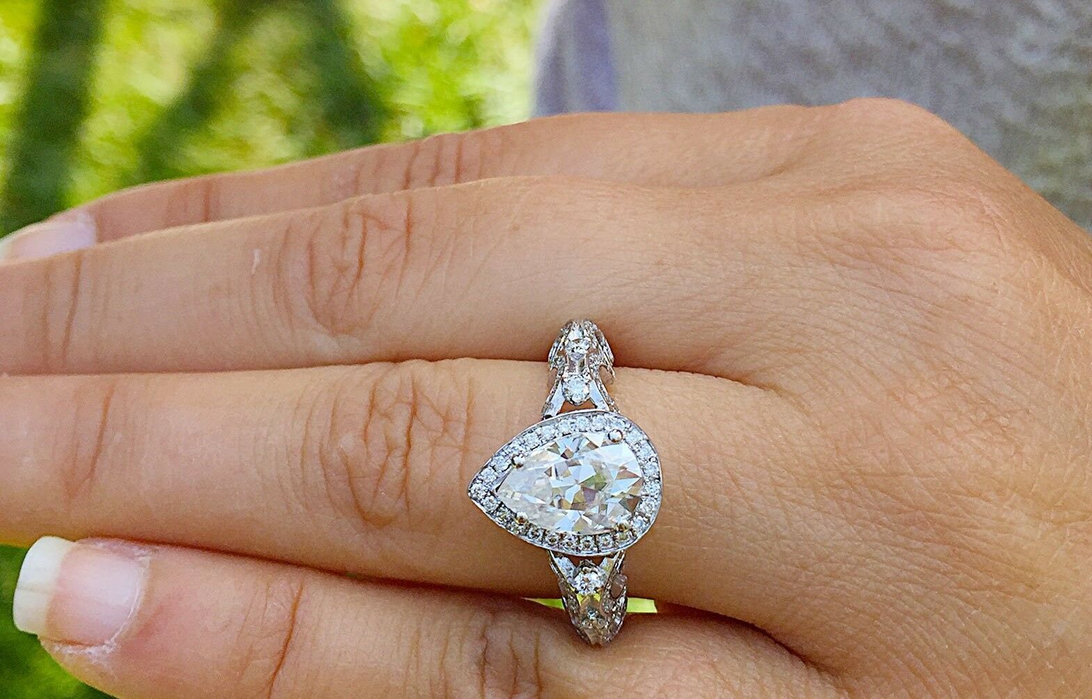 Antique Vintage Halo Engagement Ring 2ct Pear Cut Diamond 14k White Gold Finish