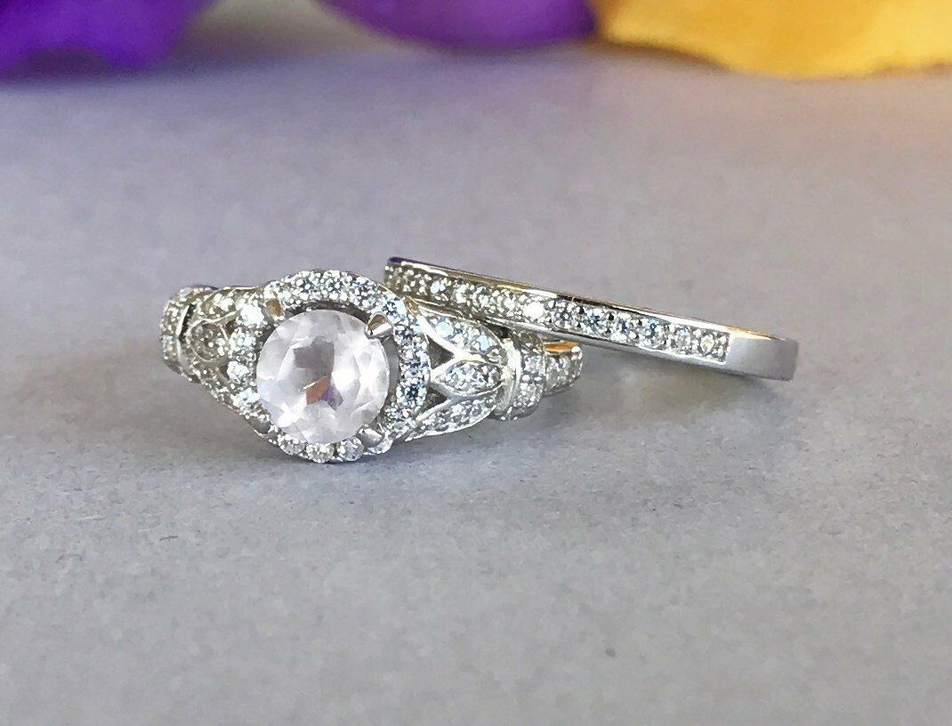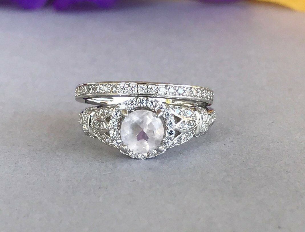 Art Deco Fancy Bridal Set Engagement Ring 2ct Round Diamond 14k WhiteGold Finish