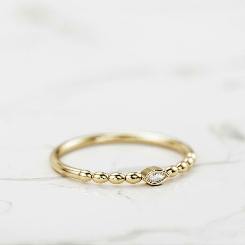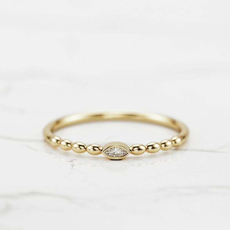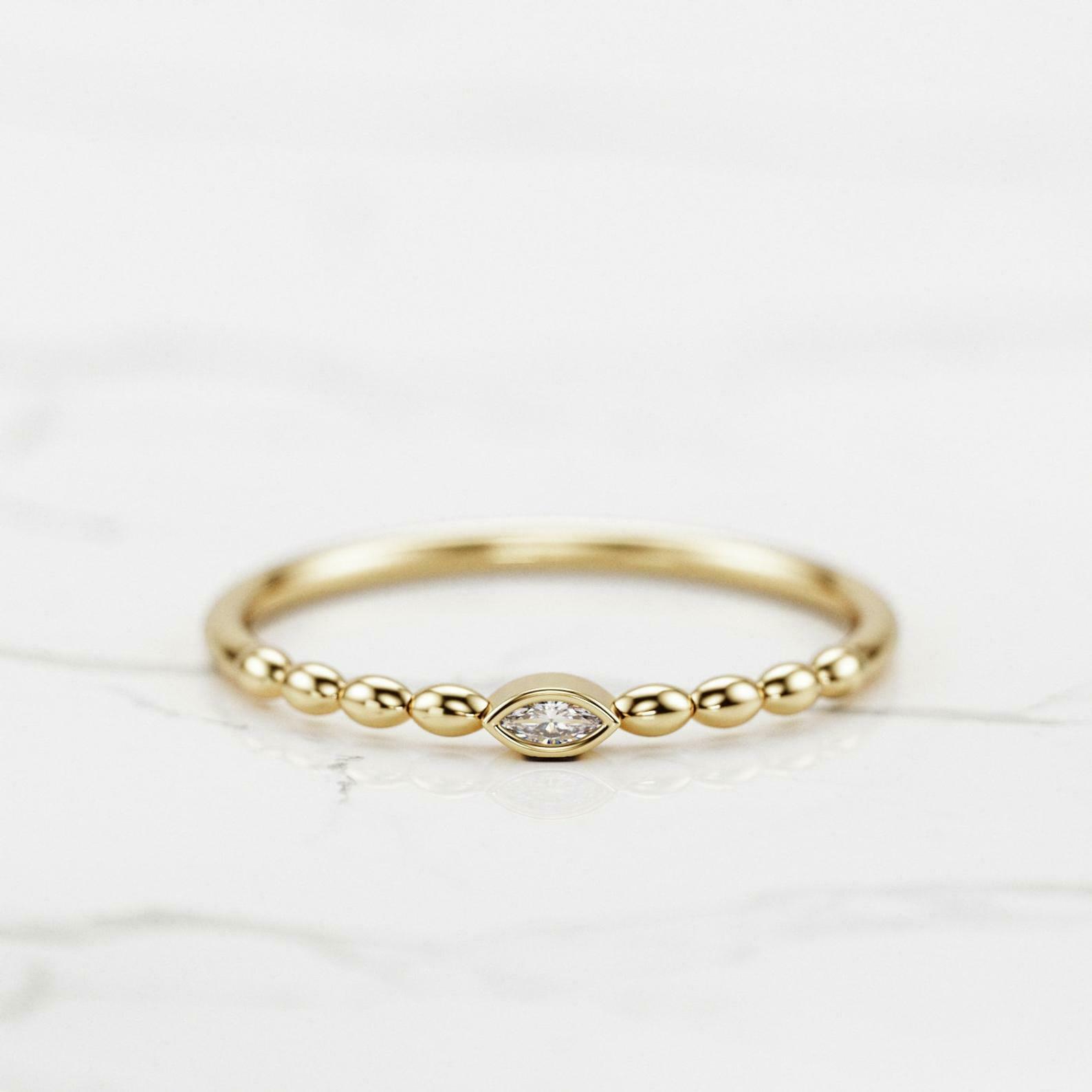 Beaded Ball Shank Solitaire Ring 0.2ct Marquise Cut Diamond 14k Yellow Gold Over
