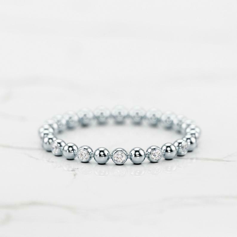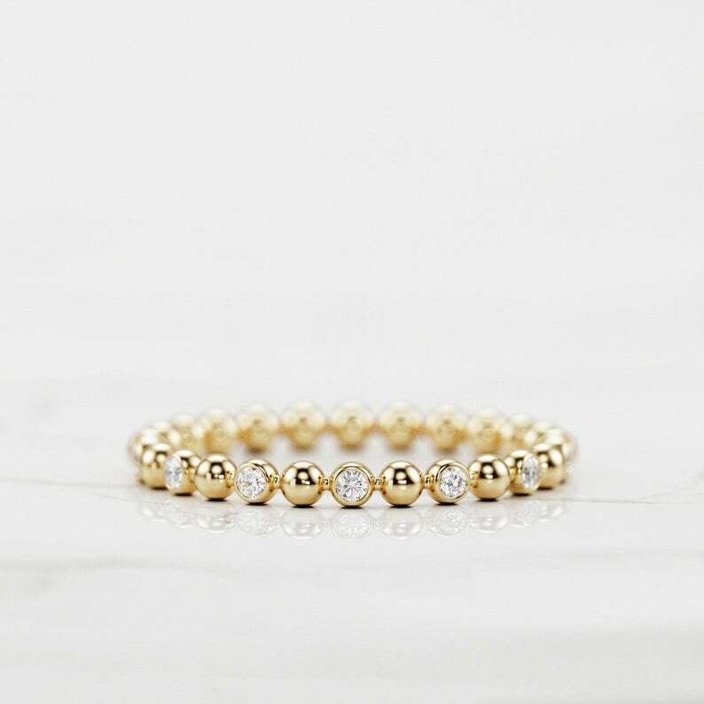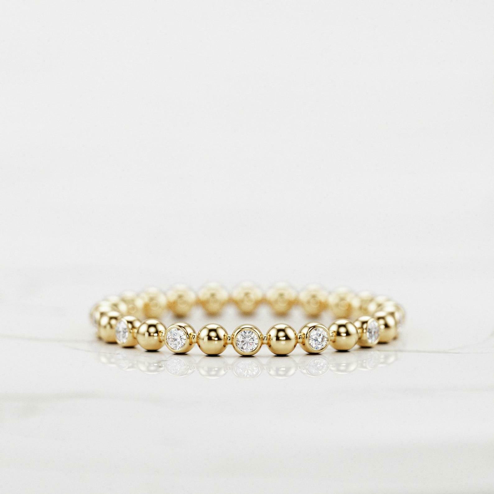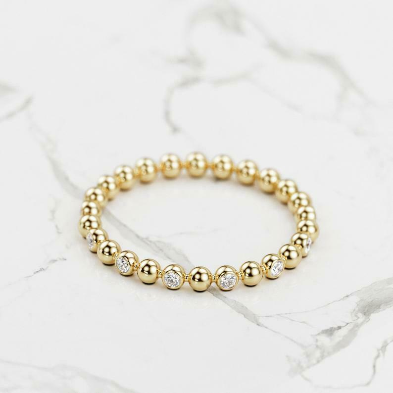Bezel Set Full Eternity Wedding Band 0.5ct Round Cut Diamond 14k Yellow Gold Over