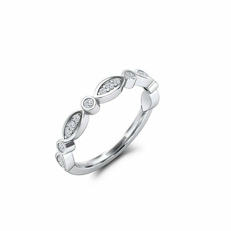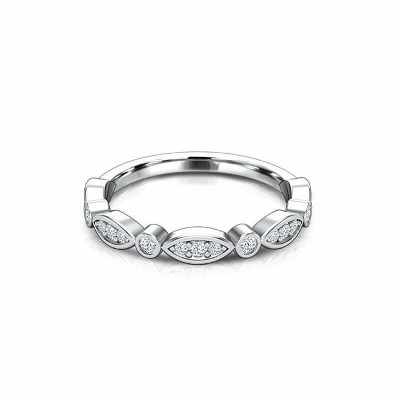 Bezel Set Half Eternity Wedding Band 0.2ct Round Cut Diamond 14k White Gold Over