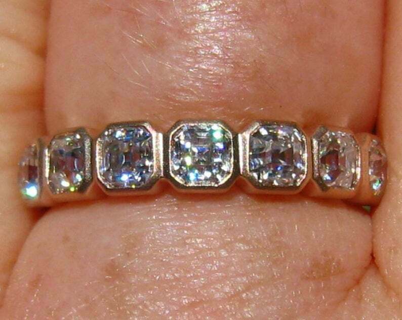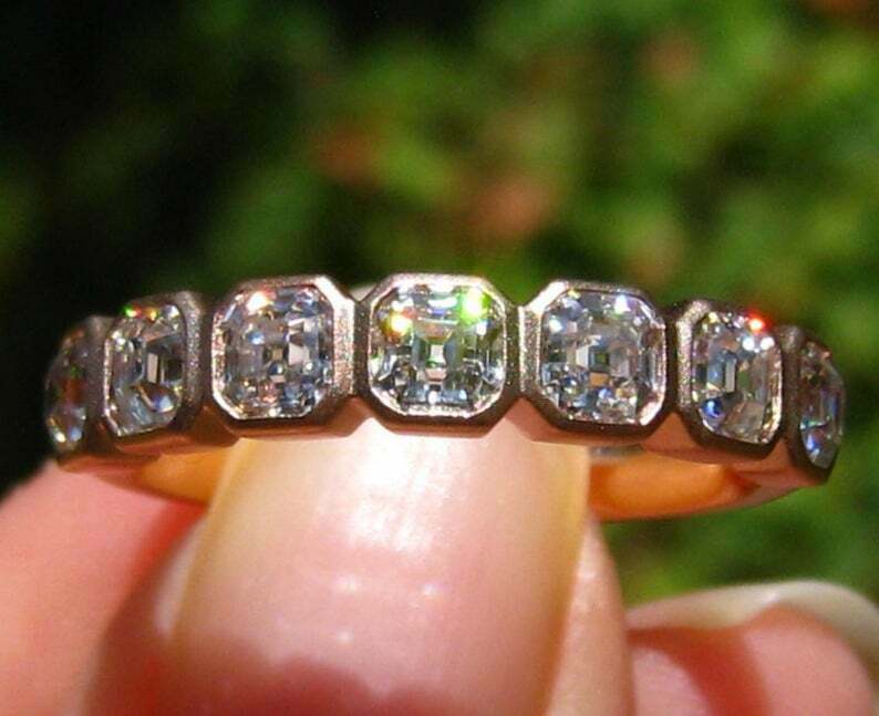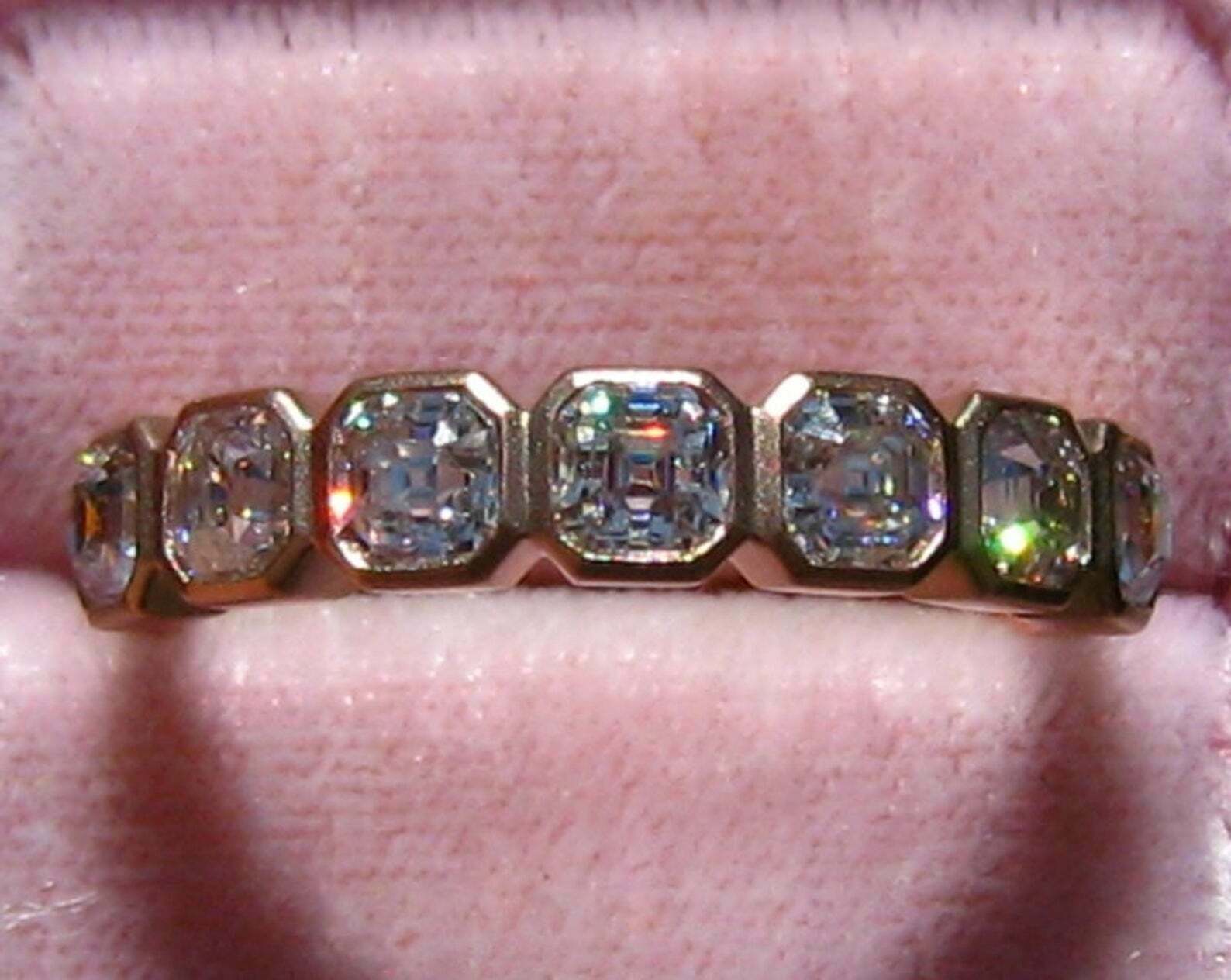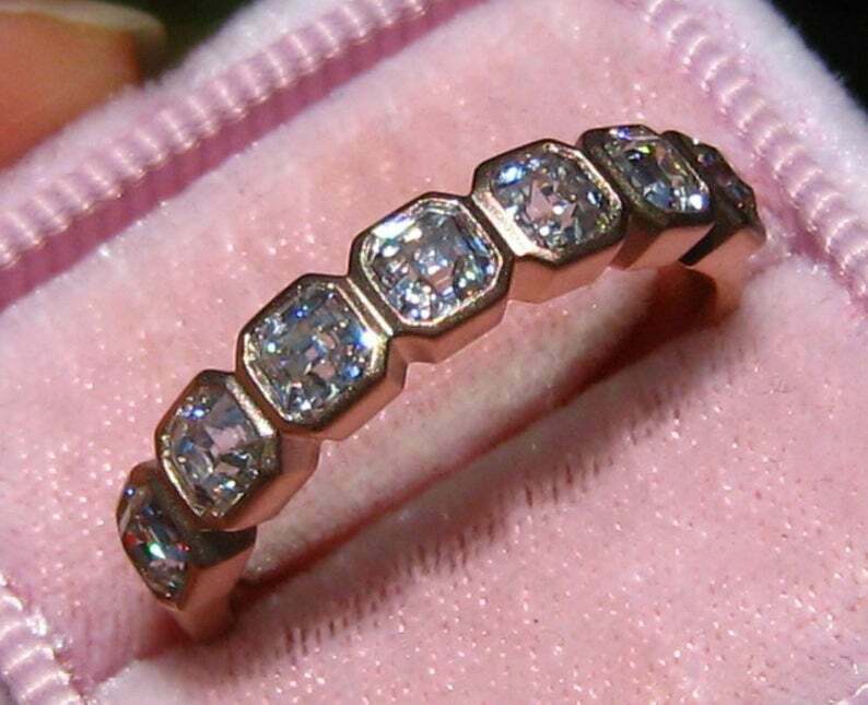Bezel Set Half Eternity Wedding Band 2ct Asscher Cut Diamond 14k RoseGold Finish