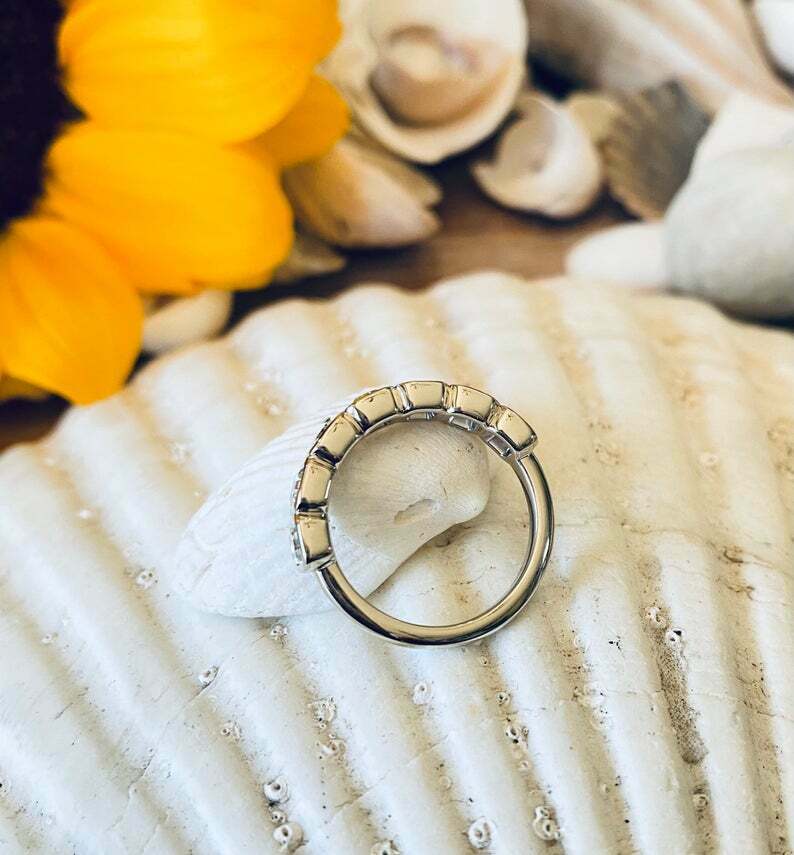 Bezel Set Half Eternity Wedding Band 2ct Asscher Cut Diamond 14k White Gold Over