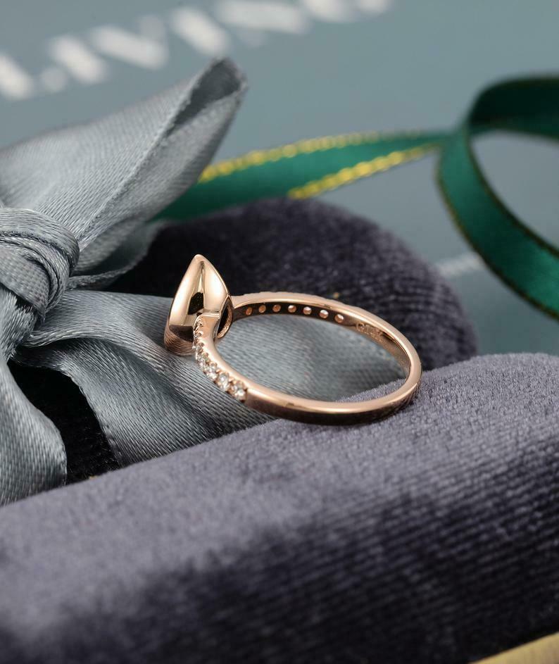 Bezel Set Solitaire with Accents Ring 1.5ct Pear Cut Diamond 14k RoseGold Finish