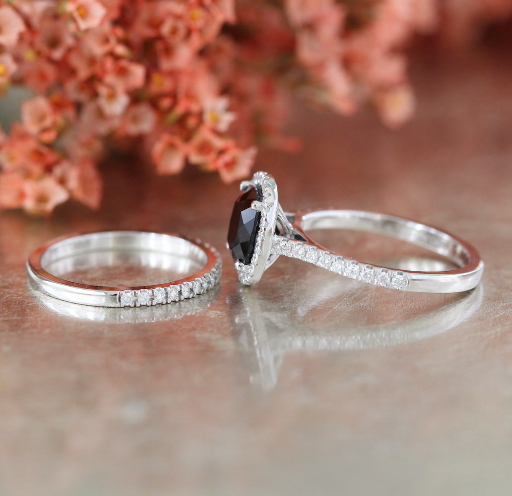 Bridal Set Engagement Ring 1.2ct Cushion Cut VVS1D Diamond 14k White Gold Finish
