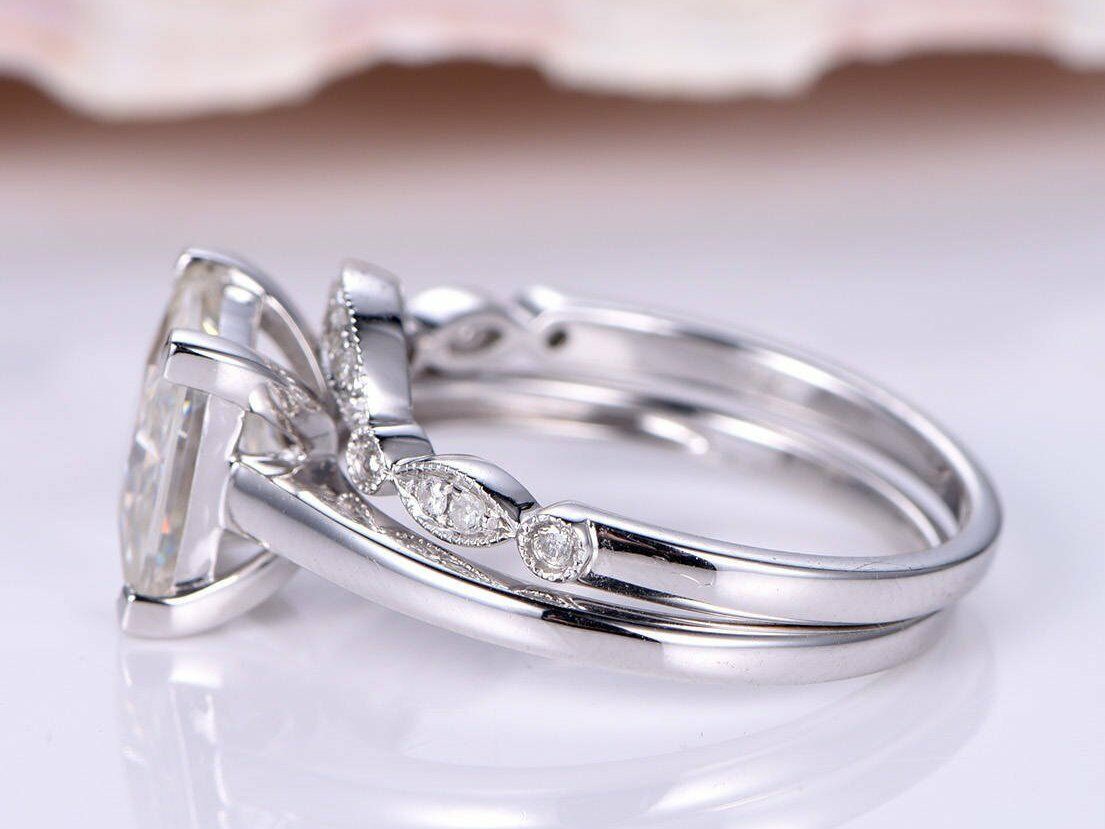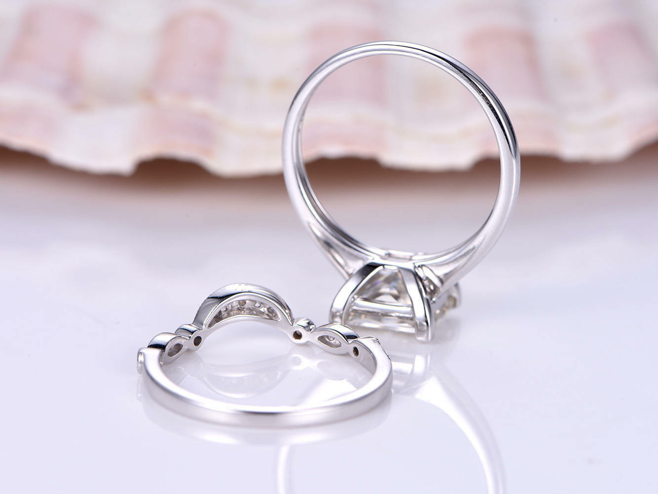Bridal Set Engagement Ring 1.9ct Princess Cut VVS1 Diamond 14k White Gold Finish